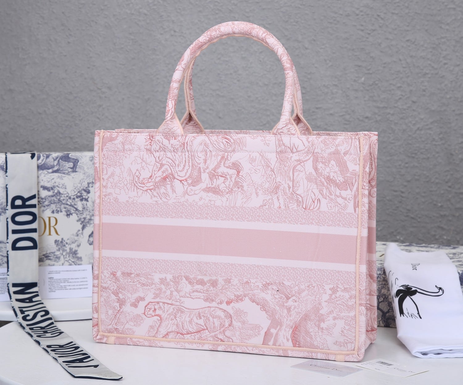 DIOR LARGE TOTE TOILE DE JOUY EMBROIDERY PINK SIZE 42CM