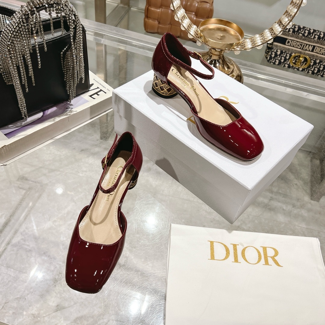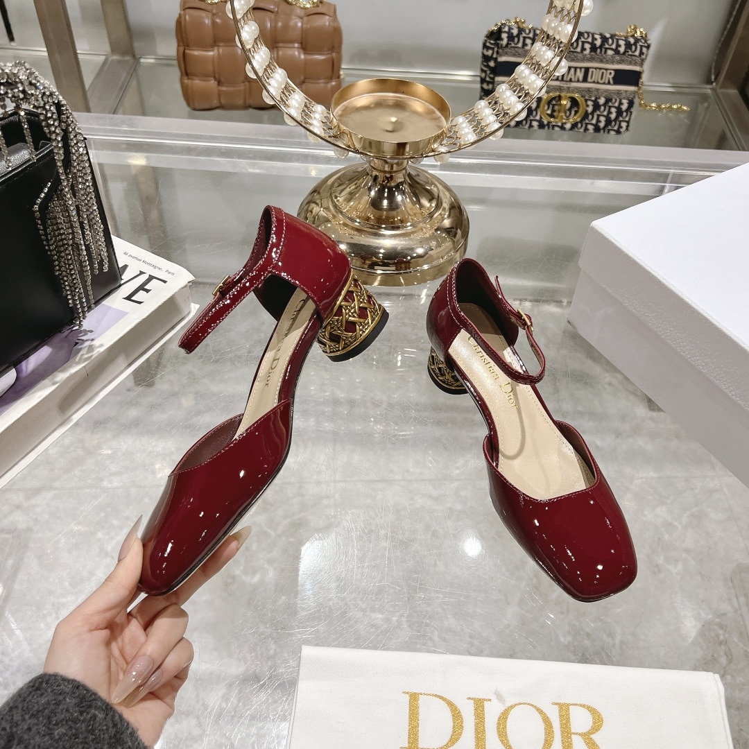 DIOR MARY JANE PUMPS WITH METAL HEEL BURGUNDY