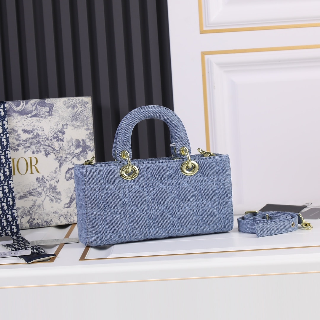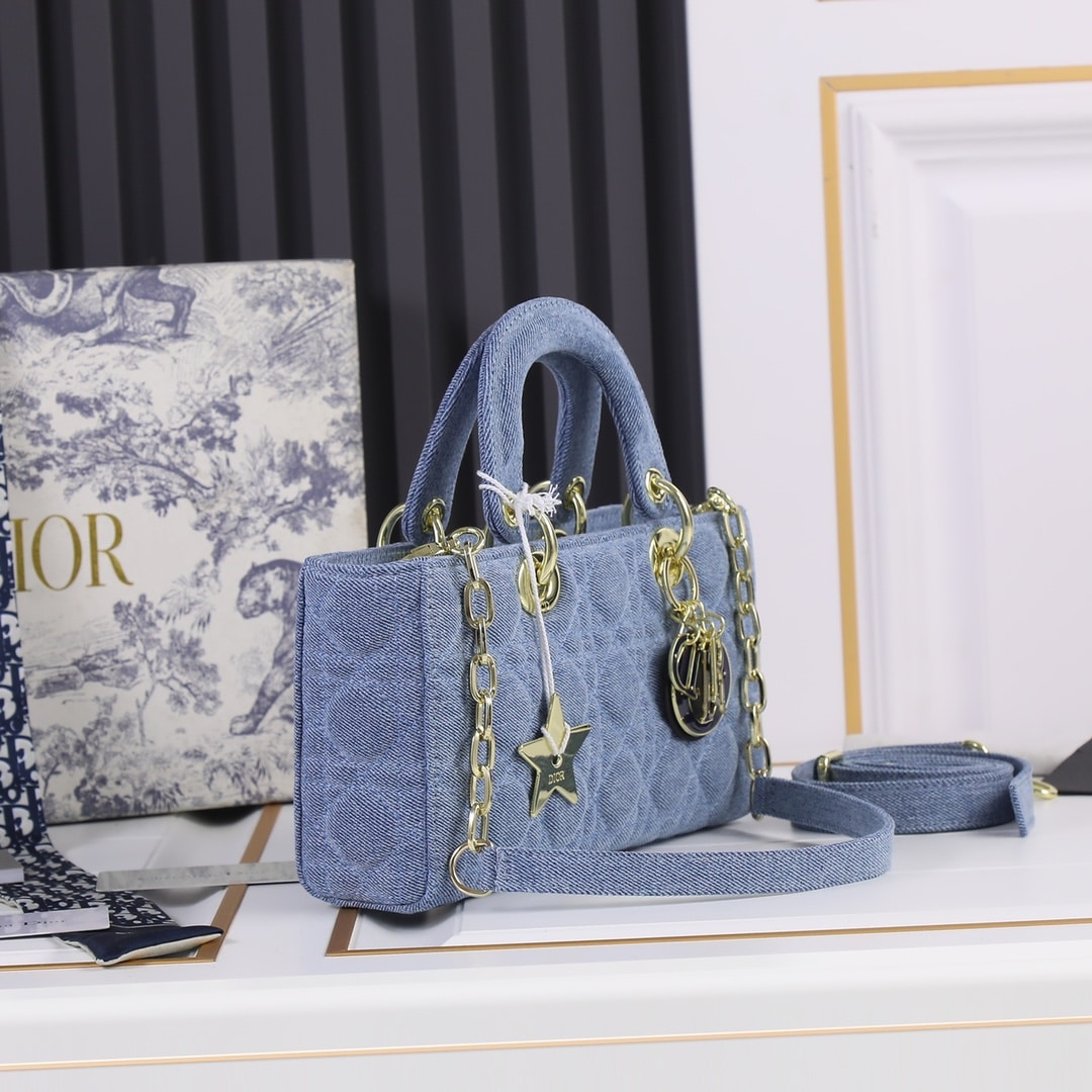 DIOR MEDIUM LADY D-JOY BAG CANNAGE DENIM BLUE / 26CM M0540WTJA_M928
