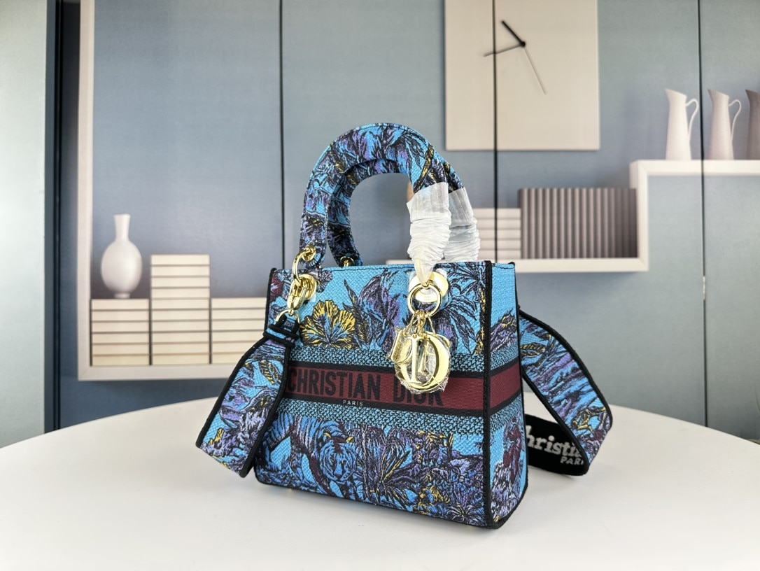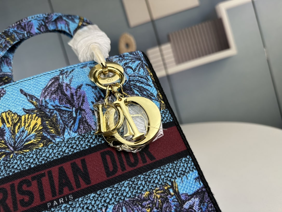 Dior Medium Lady D Lite Bag / Celestial Blue Multicolor Toile De Jouy Voyage Embroidery 24cm M0565oeupm259