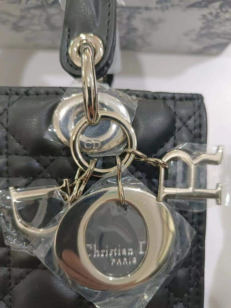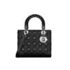 DIOR MEDIUM LADY DIOR BAG CANNAGE BLACK SILVER HARDWARE 24CM