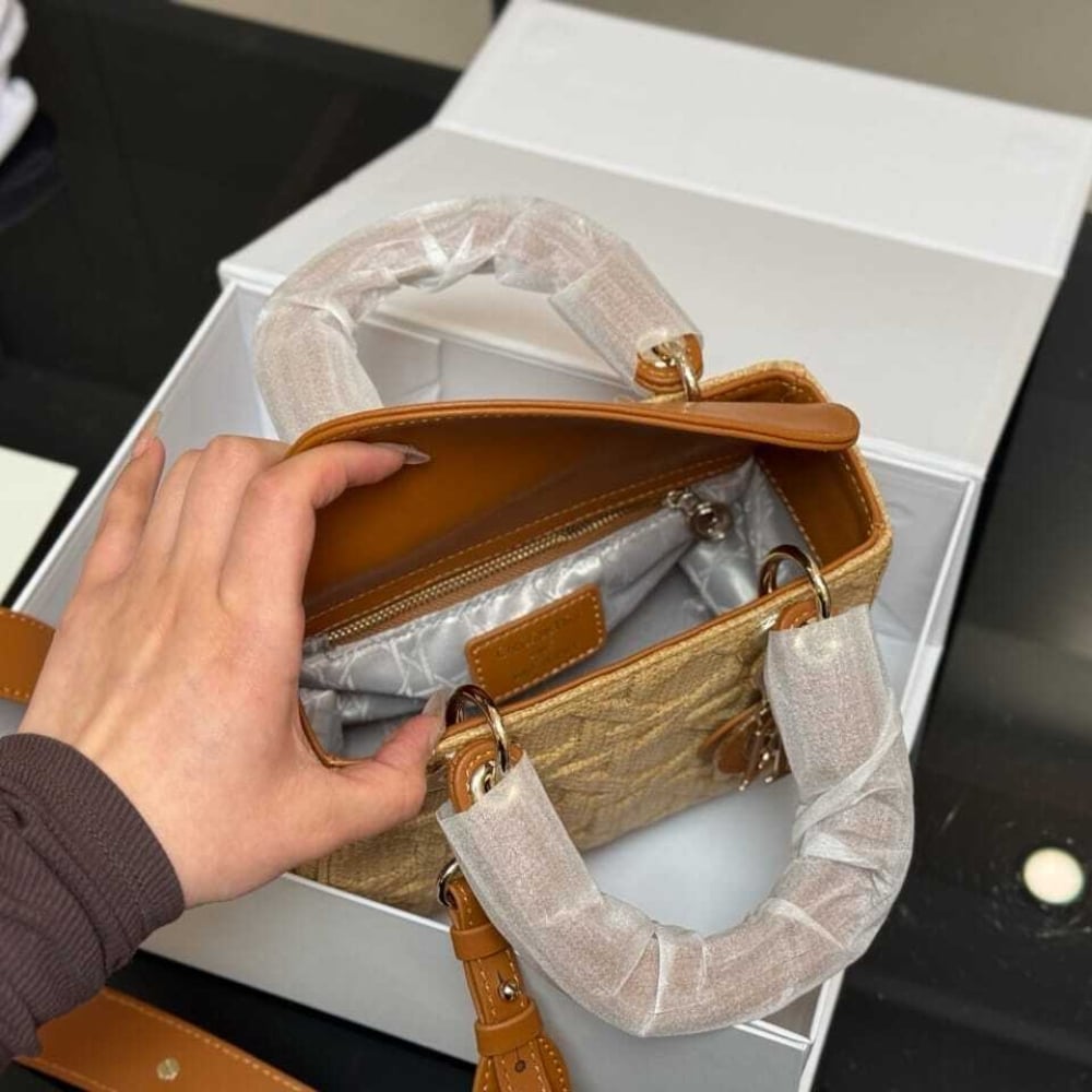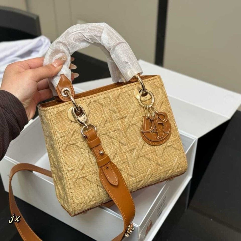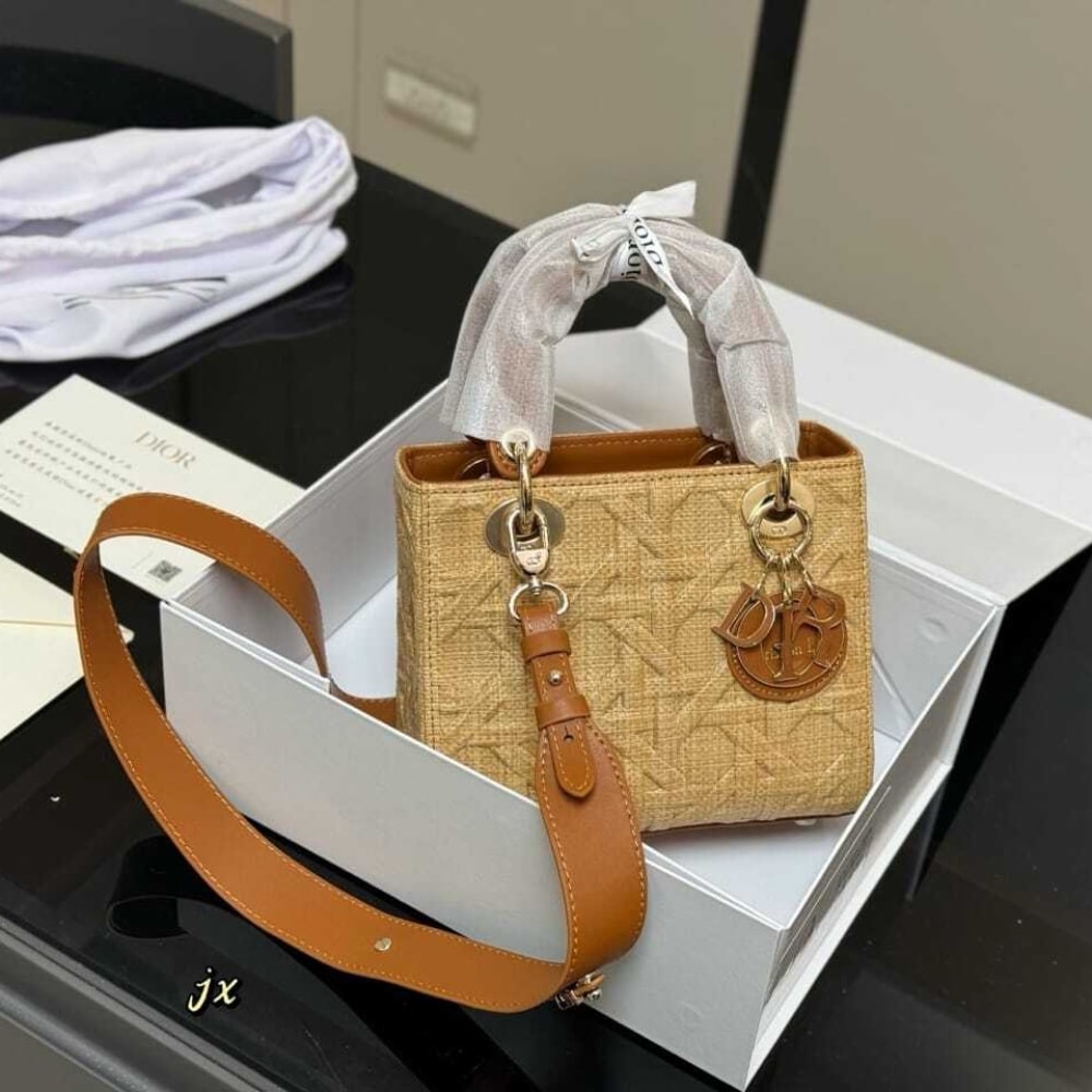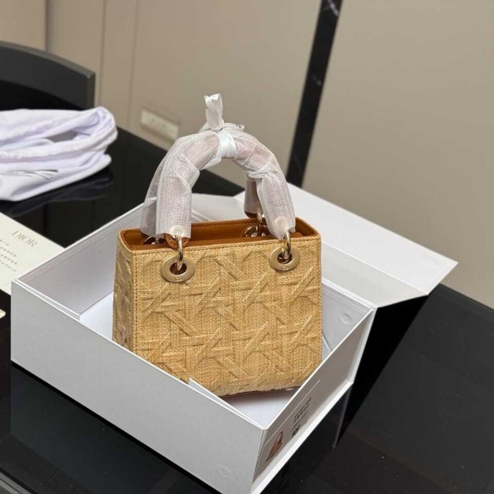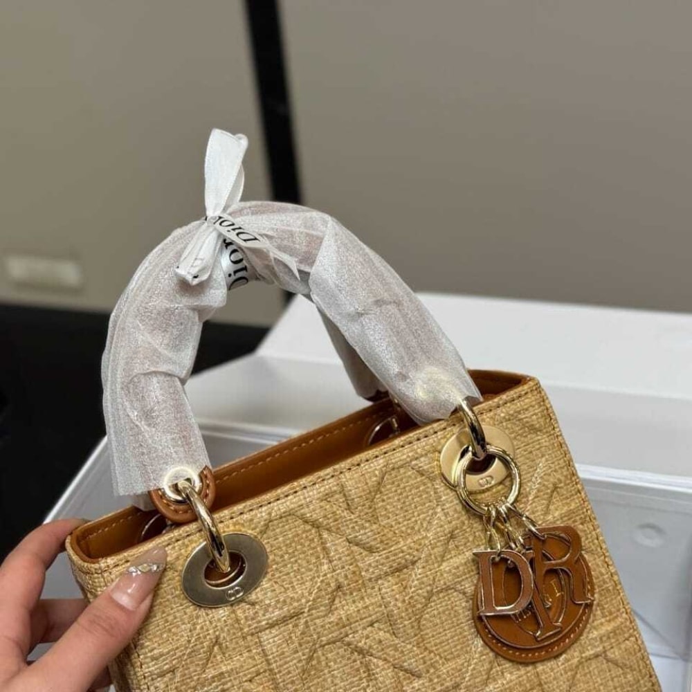 Dior //Medium Lady Dior Bag Natural Cannage Raffia //17cm