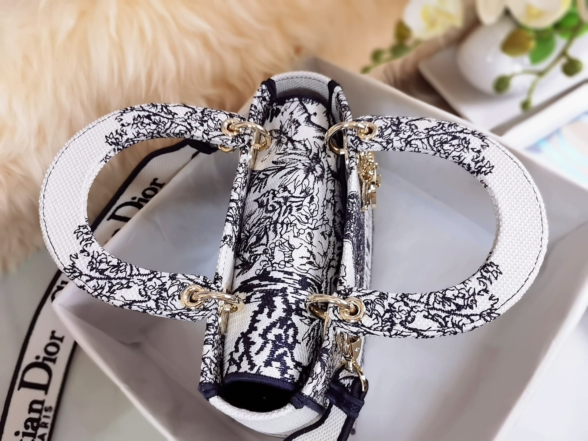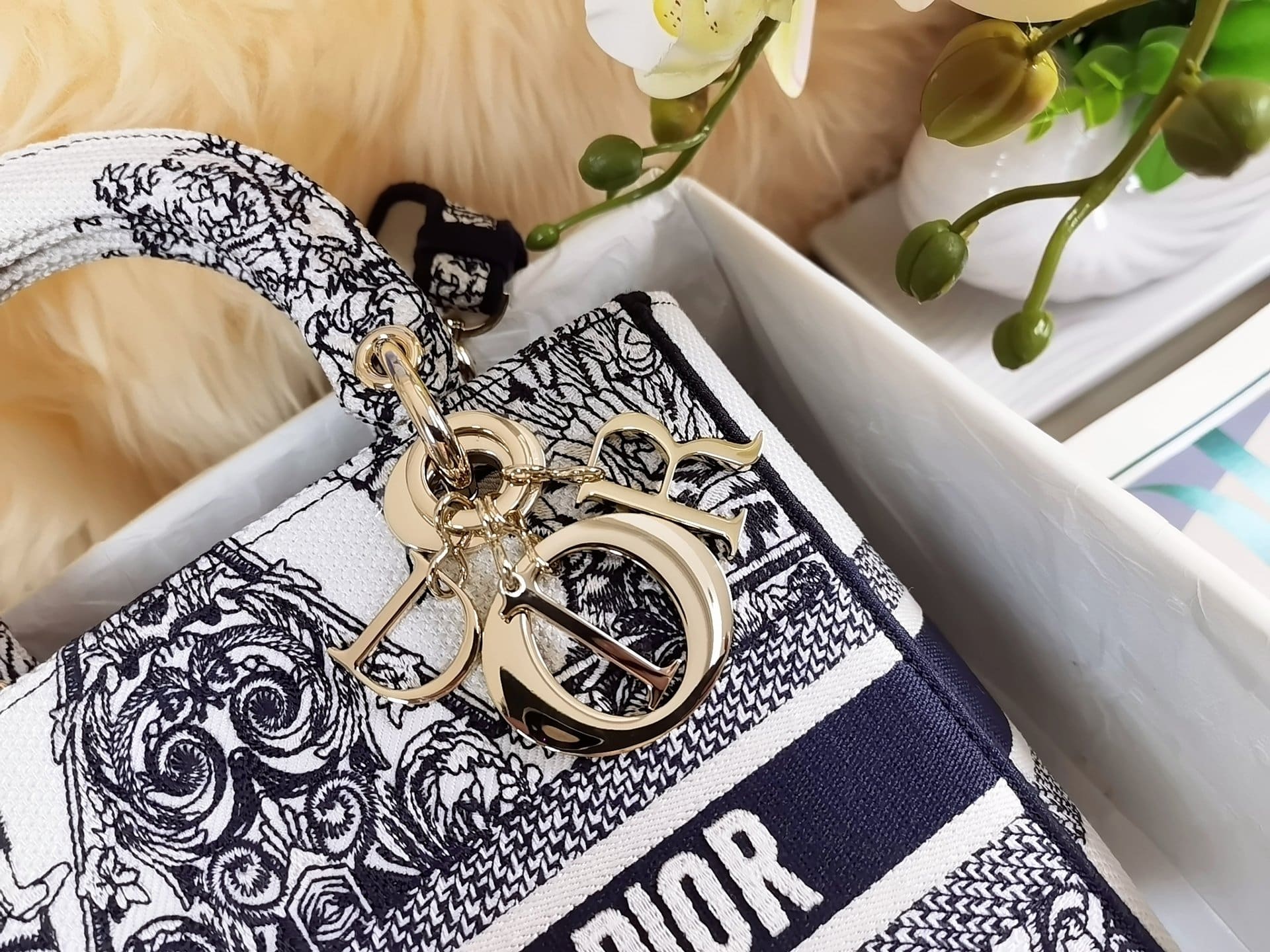 Dior Medium Lady Navy Blue Toile Embroidery M0565OTDT 24CM