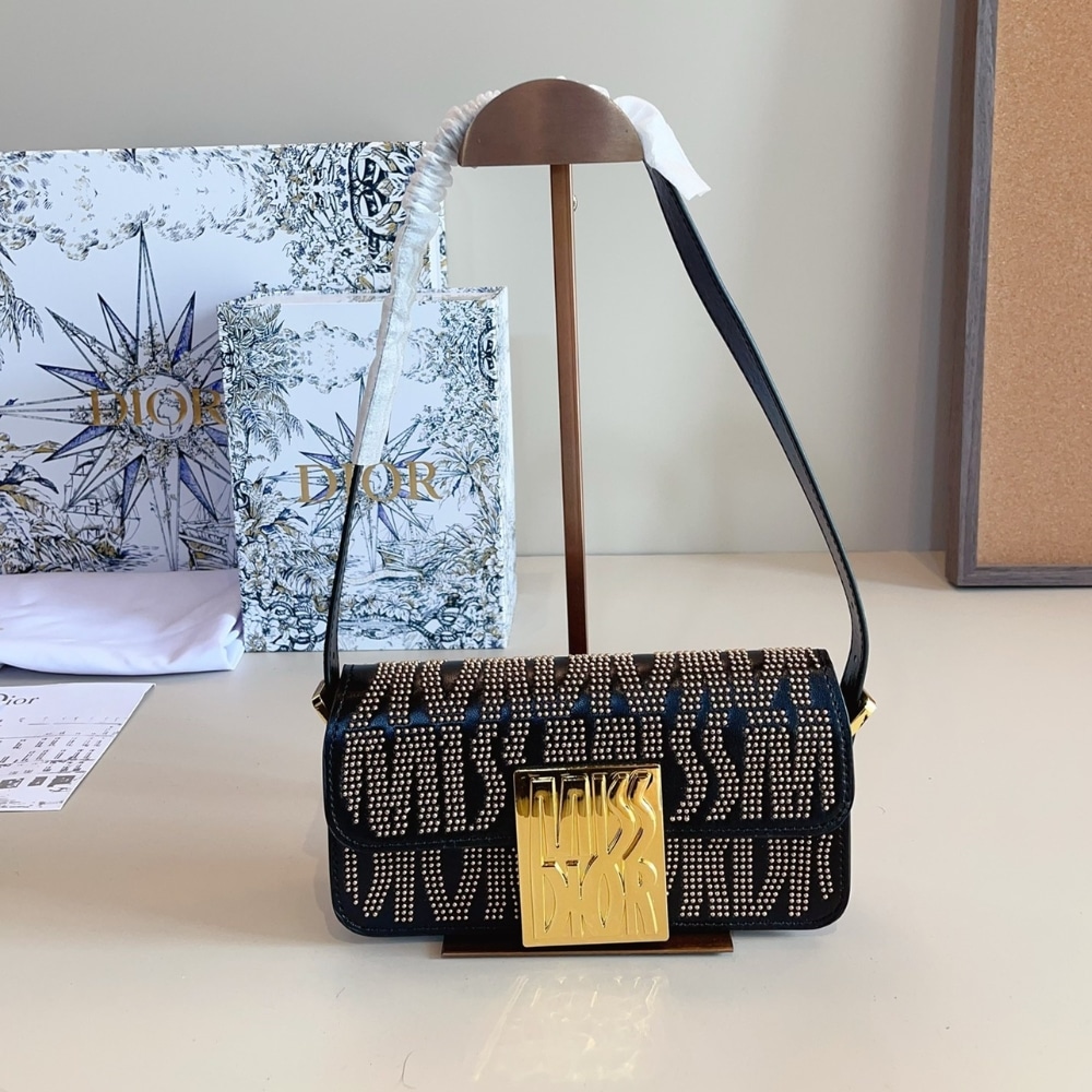 Dior Miss Dior Flap Bag Black Gold M2610UBTT M900 / 22 cm/ 8.7 inches
