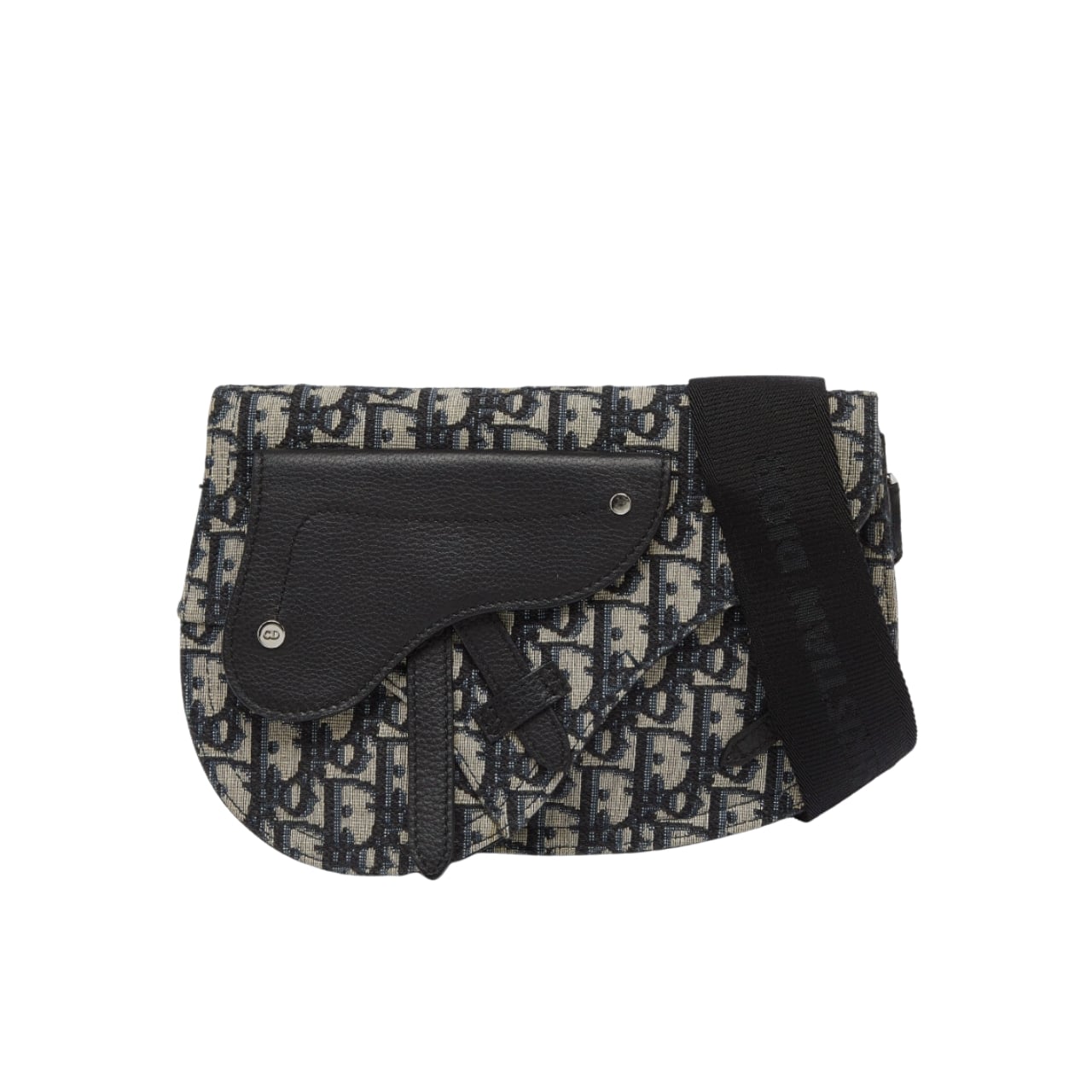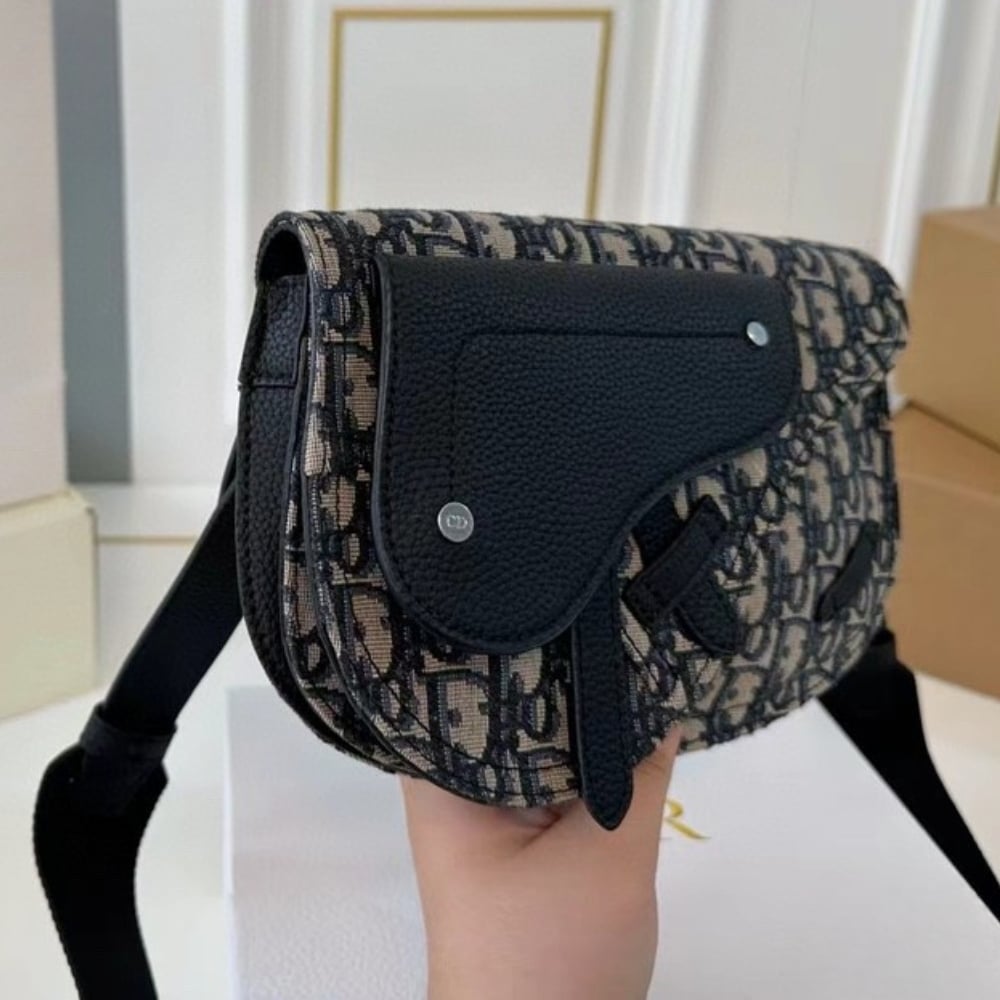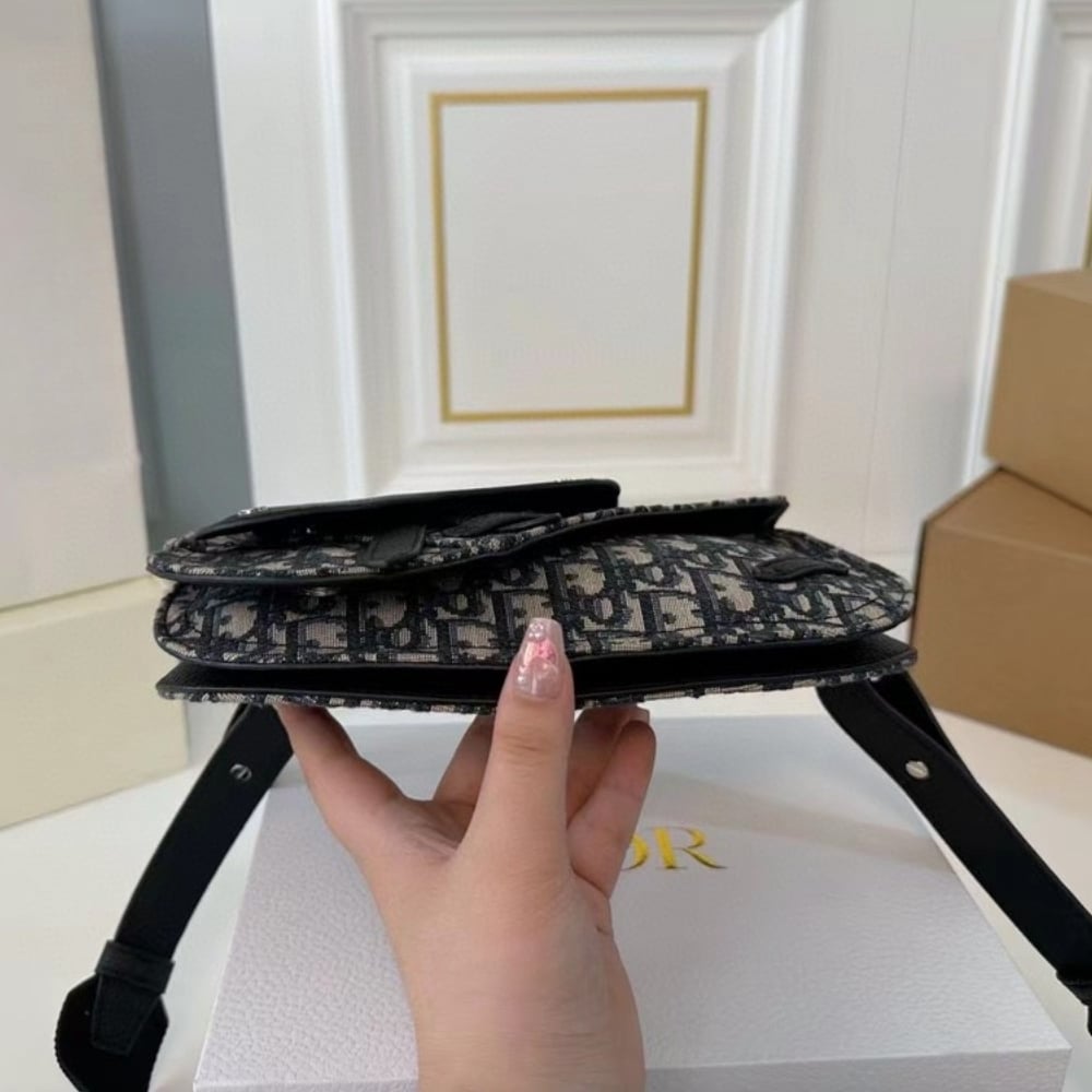 Dior Oblique Canvas And Leather Saddle Pouch Bag Black 23 cm / 9 inches
