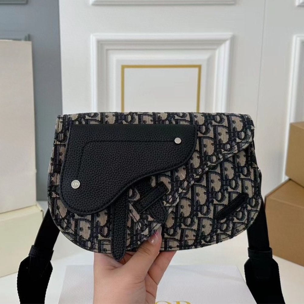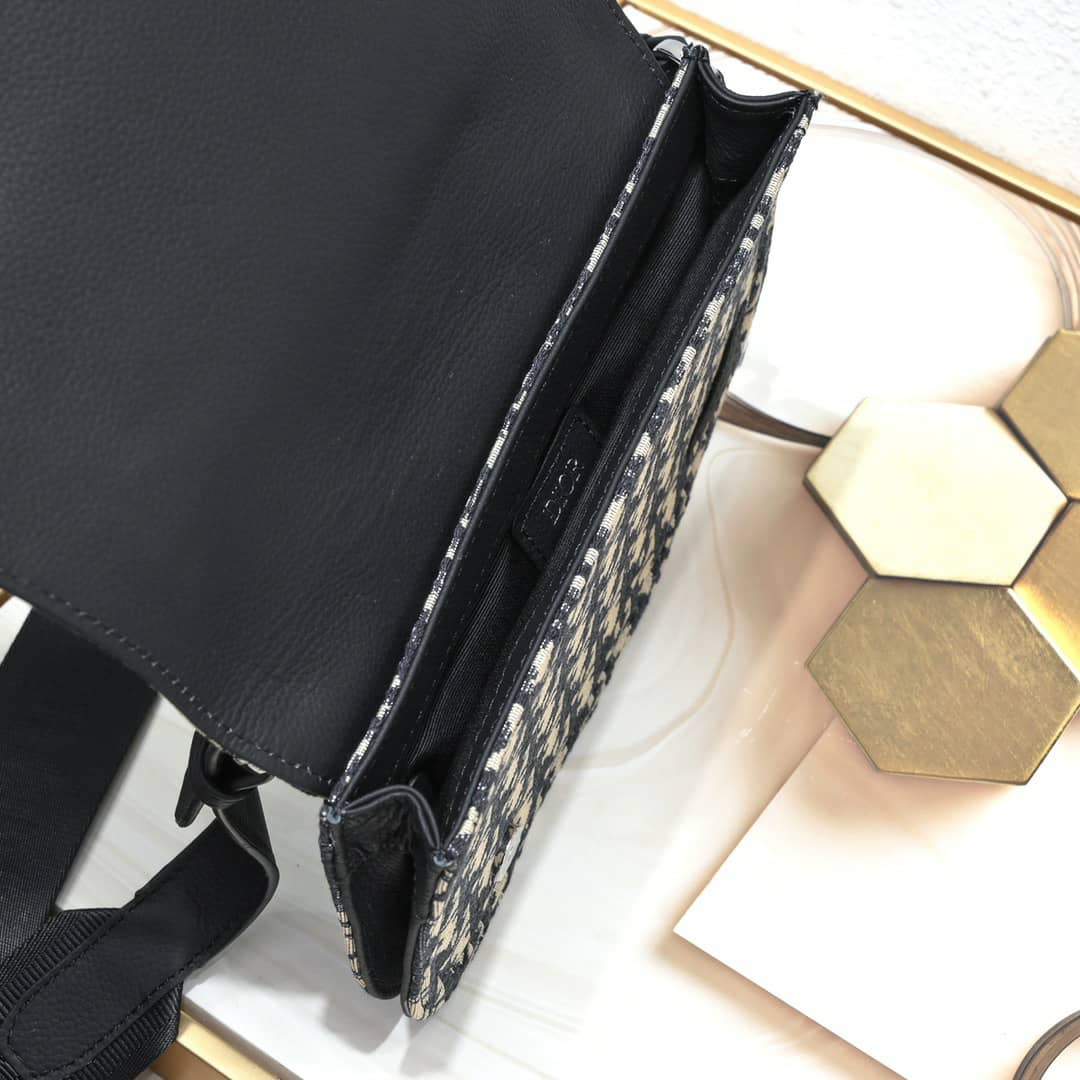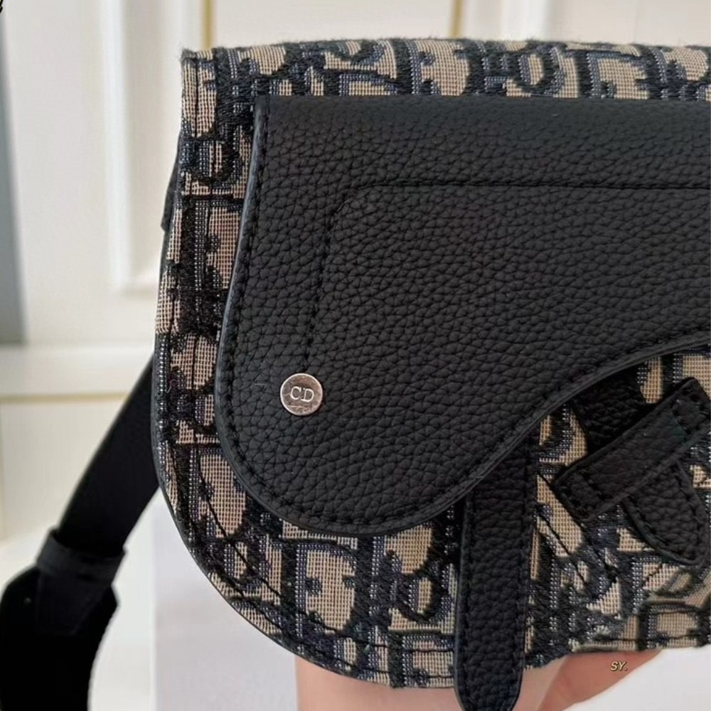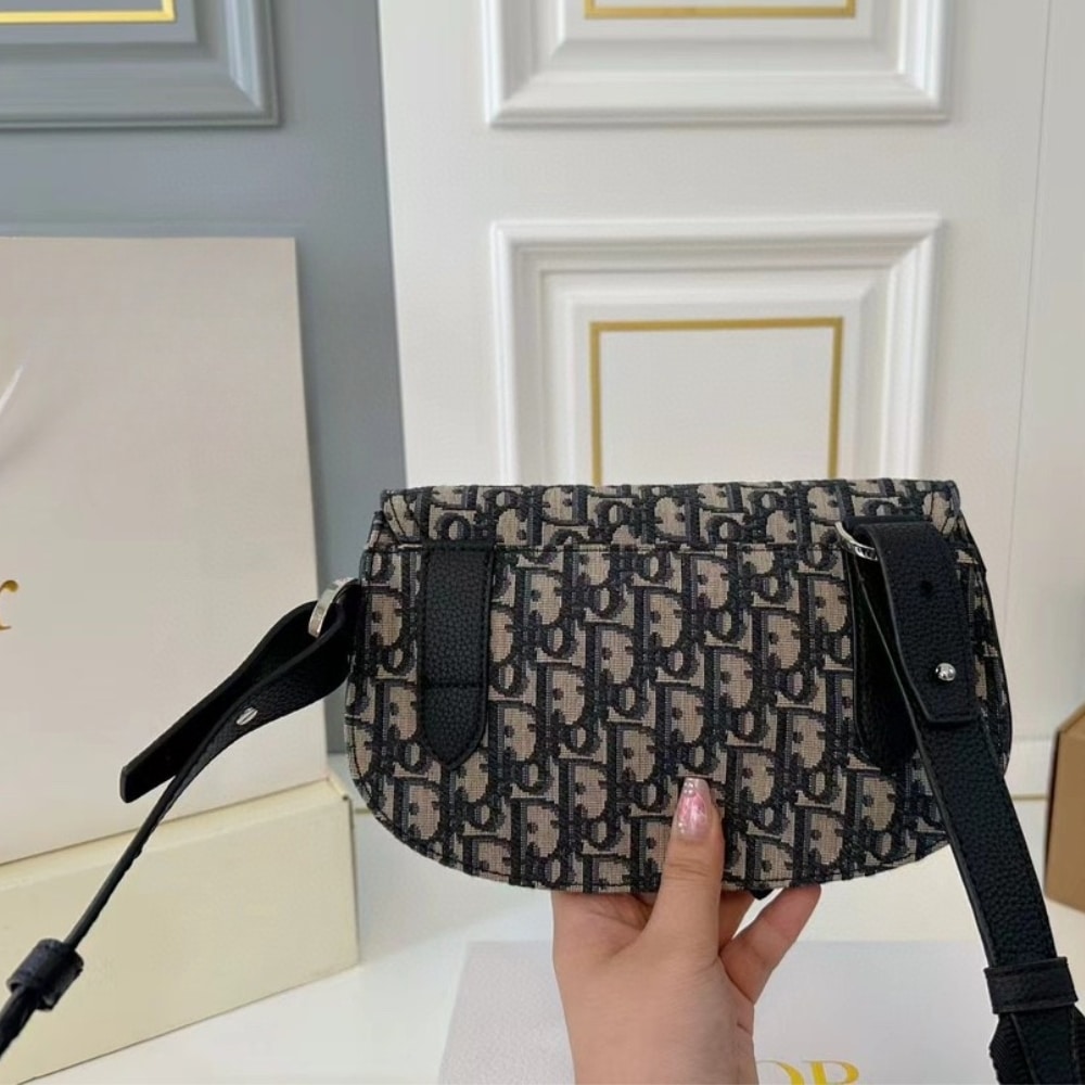 Dior Oblique Canvas And Leather Saddle Pouch Bag Black 23 cm / 9 inches