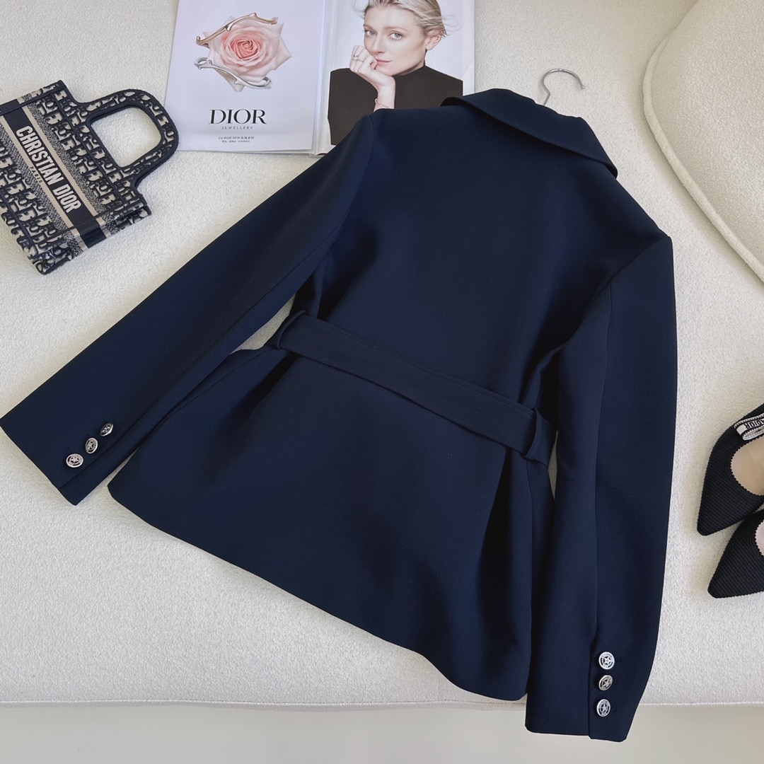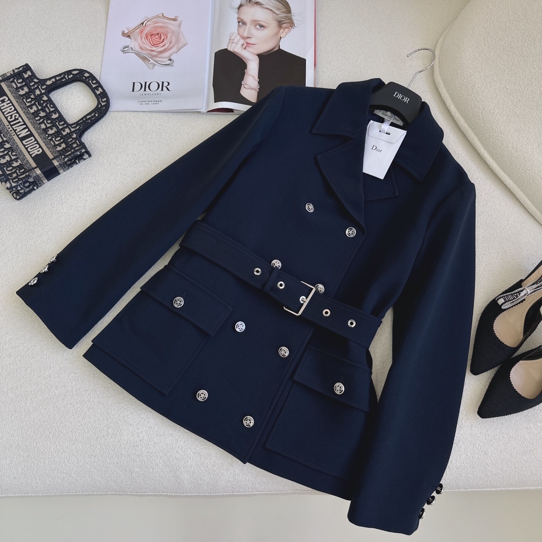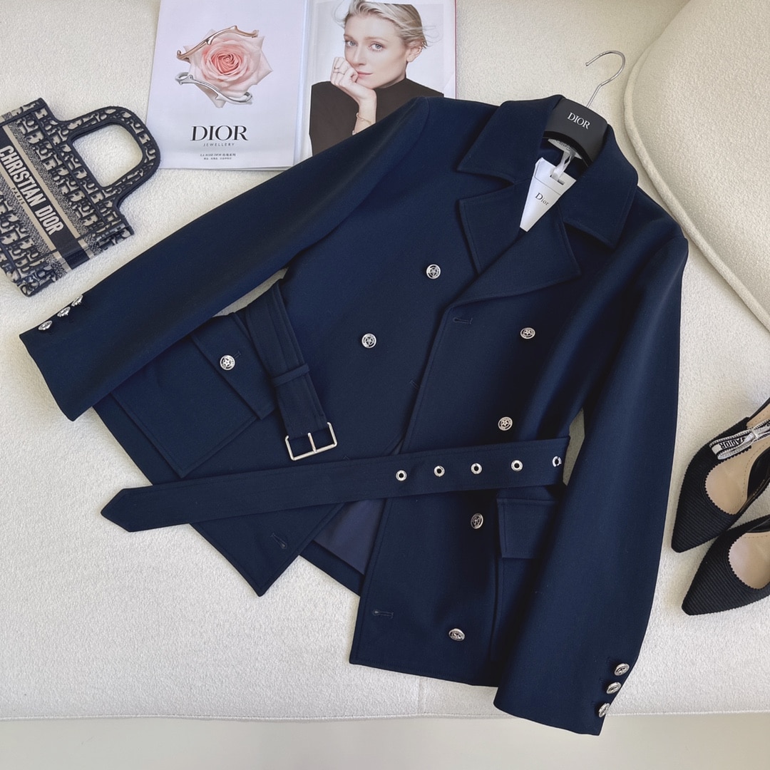 Dior Reversible Wool Blend Felt Coat Navy Blue