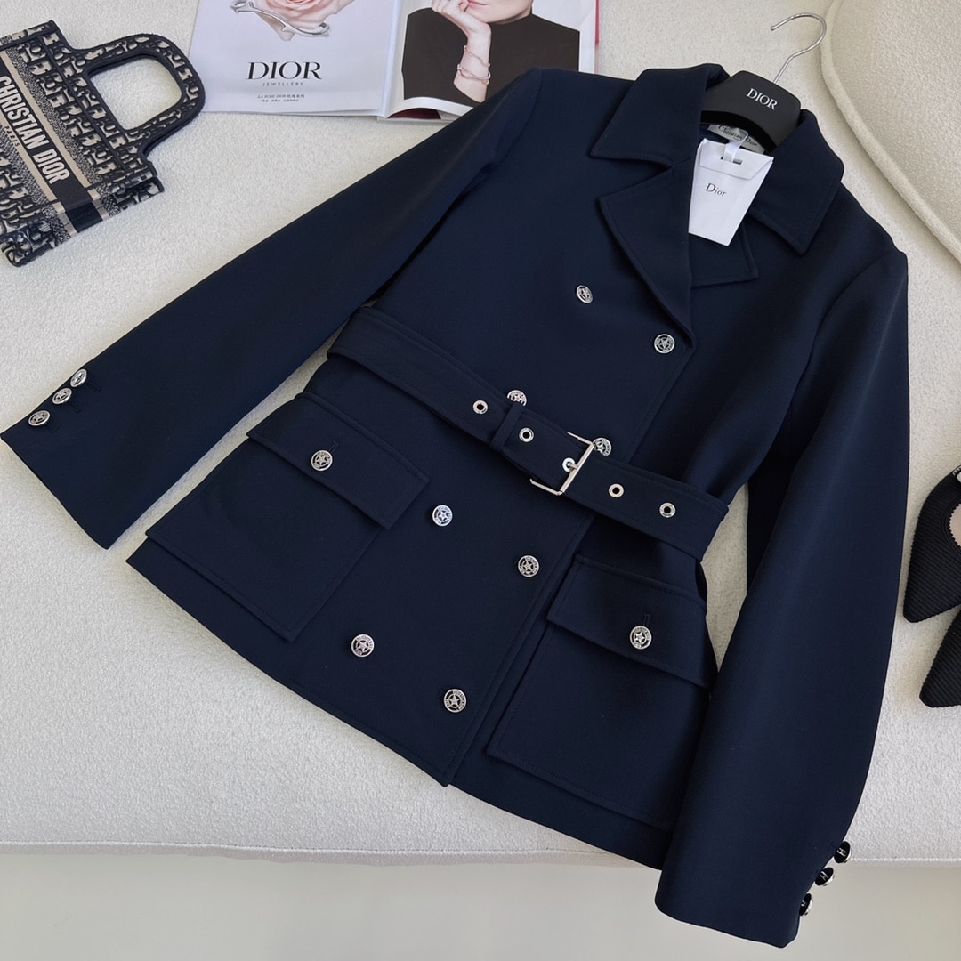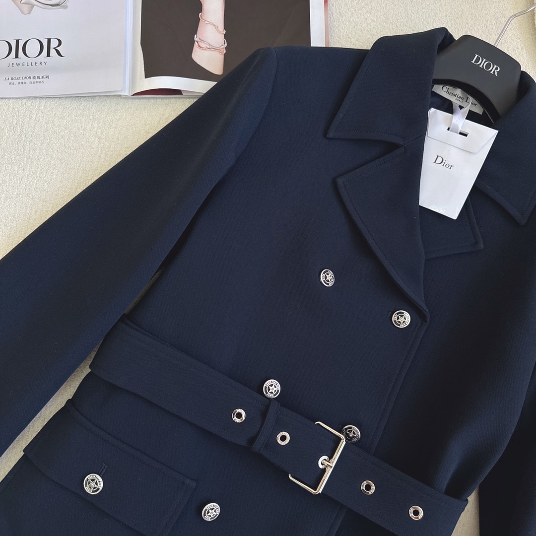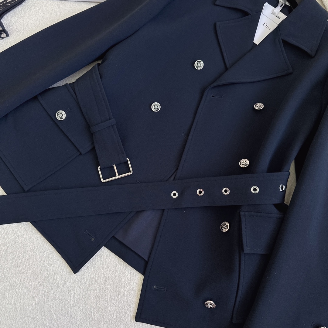 Dior Reversible Wool Blend Felt Coat Navy Blue