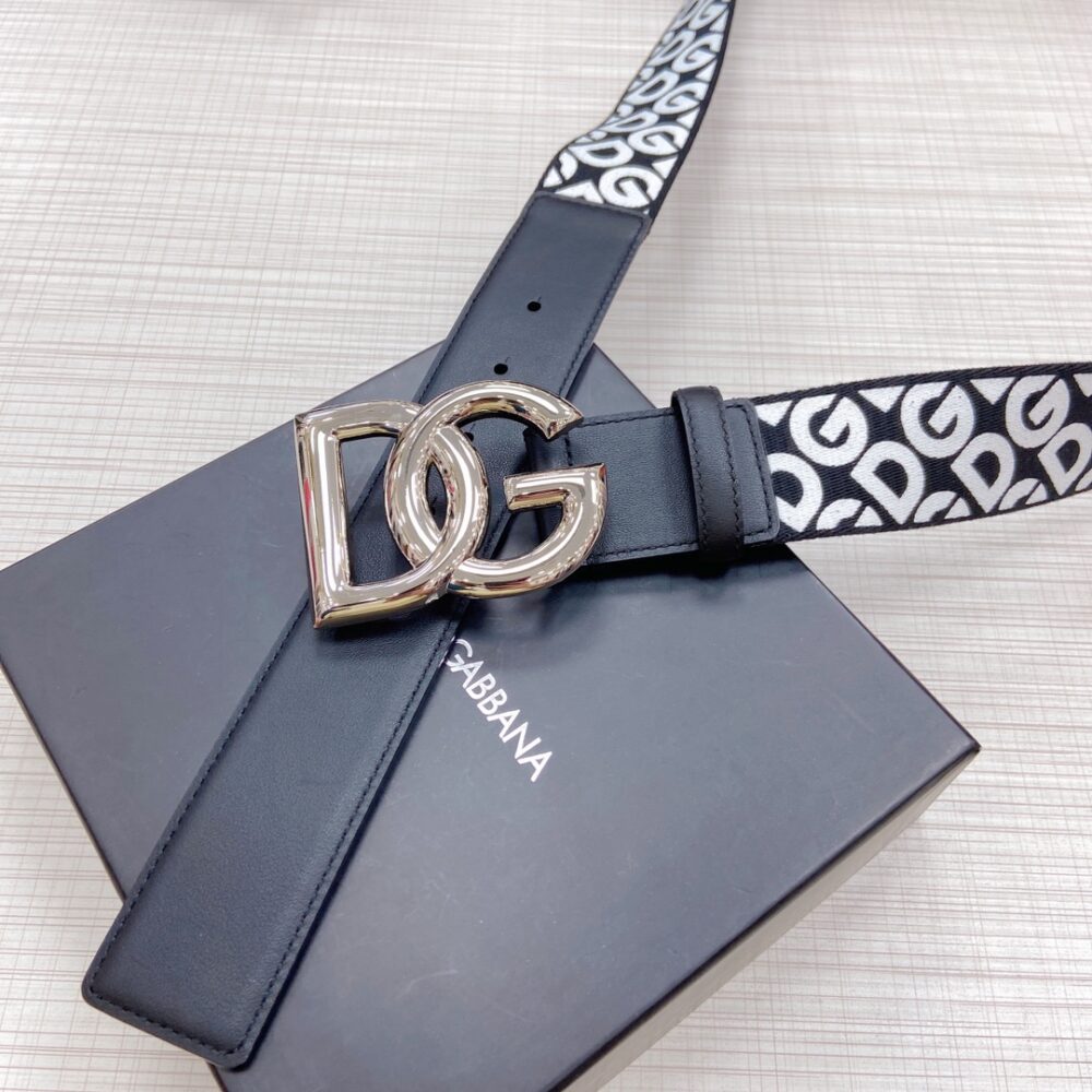 DOLCE & GABBANA LEATHER BELT WITH DG LOGO BLACK AND GOLD METAL 4CM