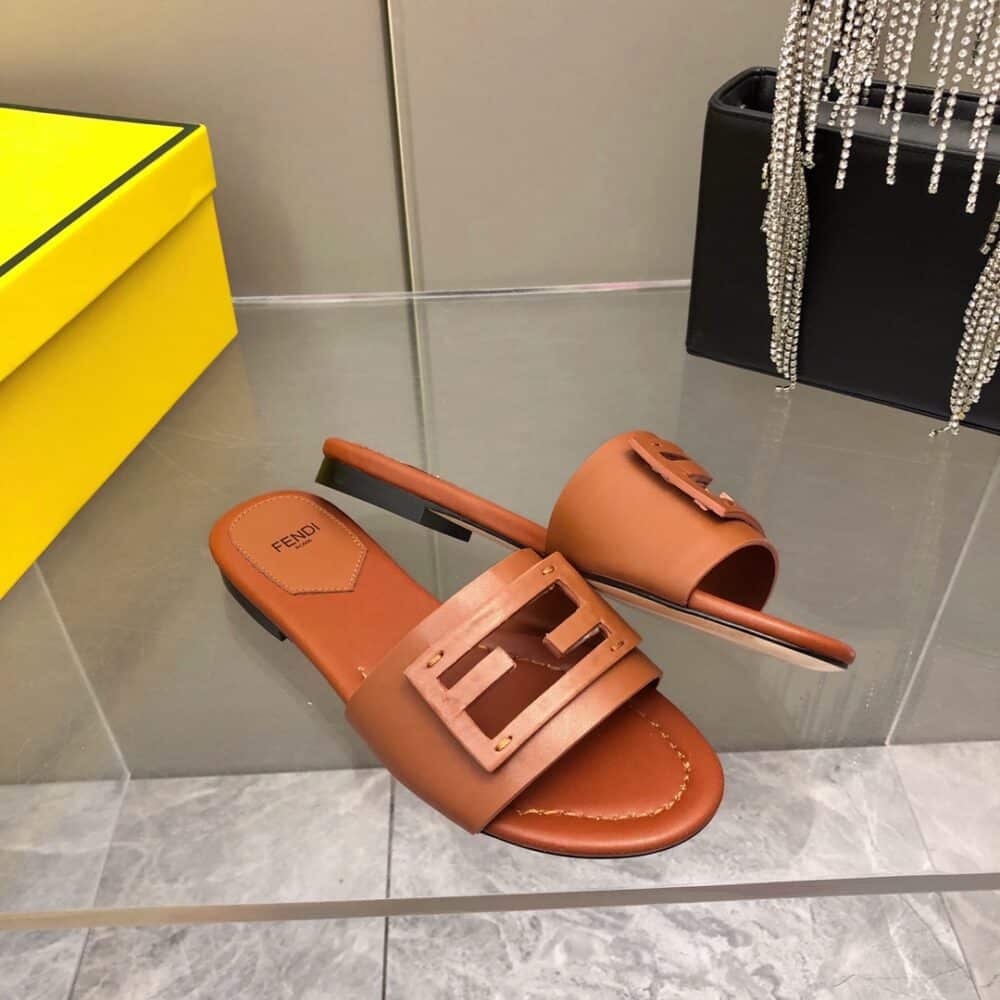 FENDI BAGUETTE BROWN LEATHER SLIDES 8R8136AE7TF1C4R