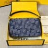 Fendi Baguette FF Chenille Bag Dark Blue 27 cm / 10.6 inches