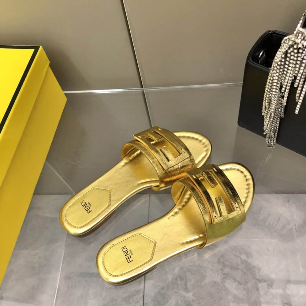 FENDI BAGUETTE GOLD NAPPA LEATHER SLIDES 8R8136AI16F0XV6