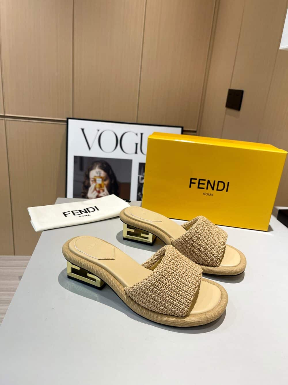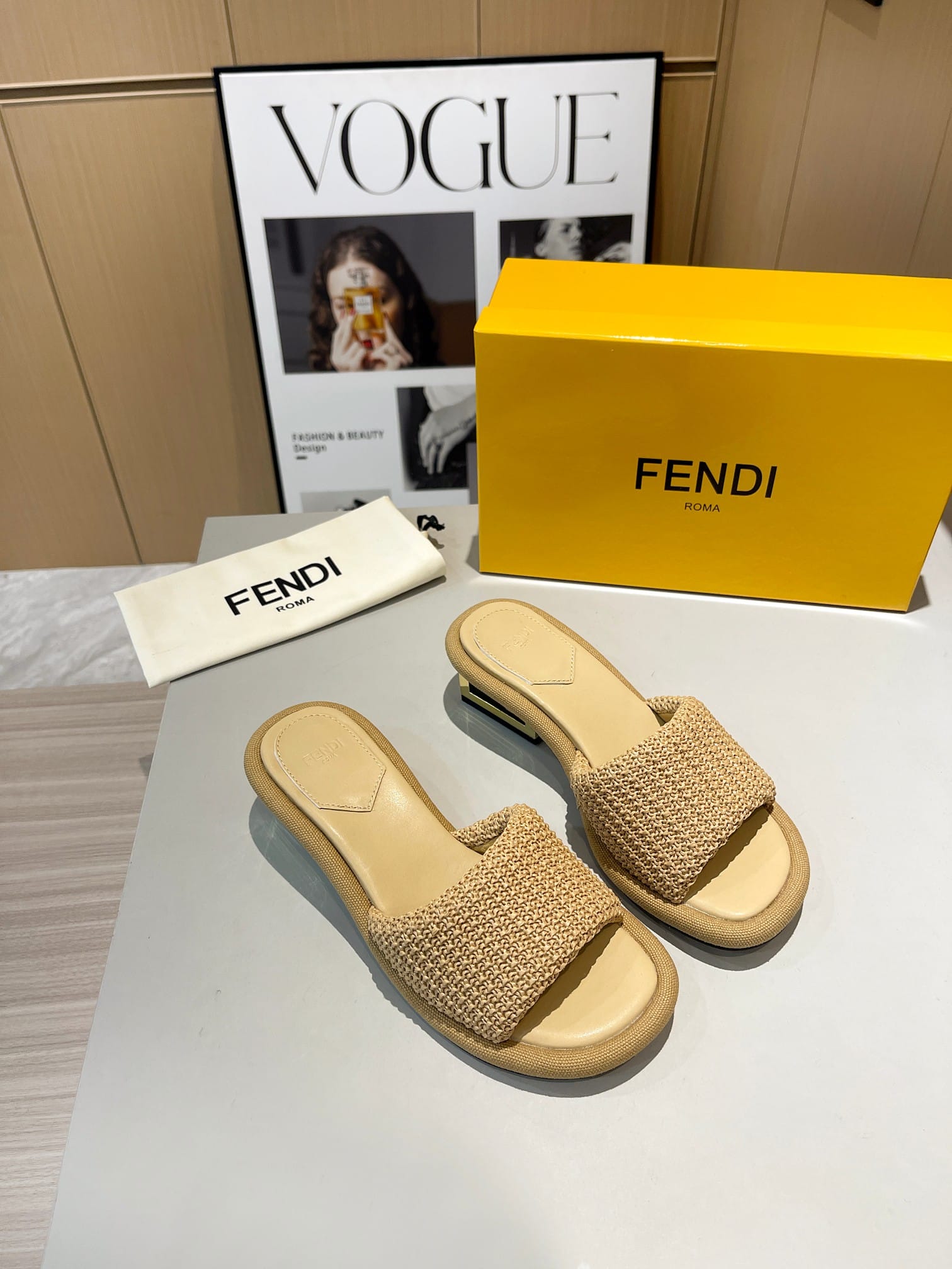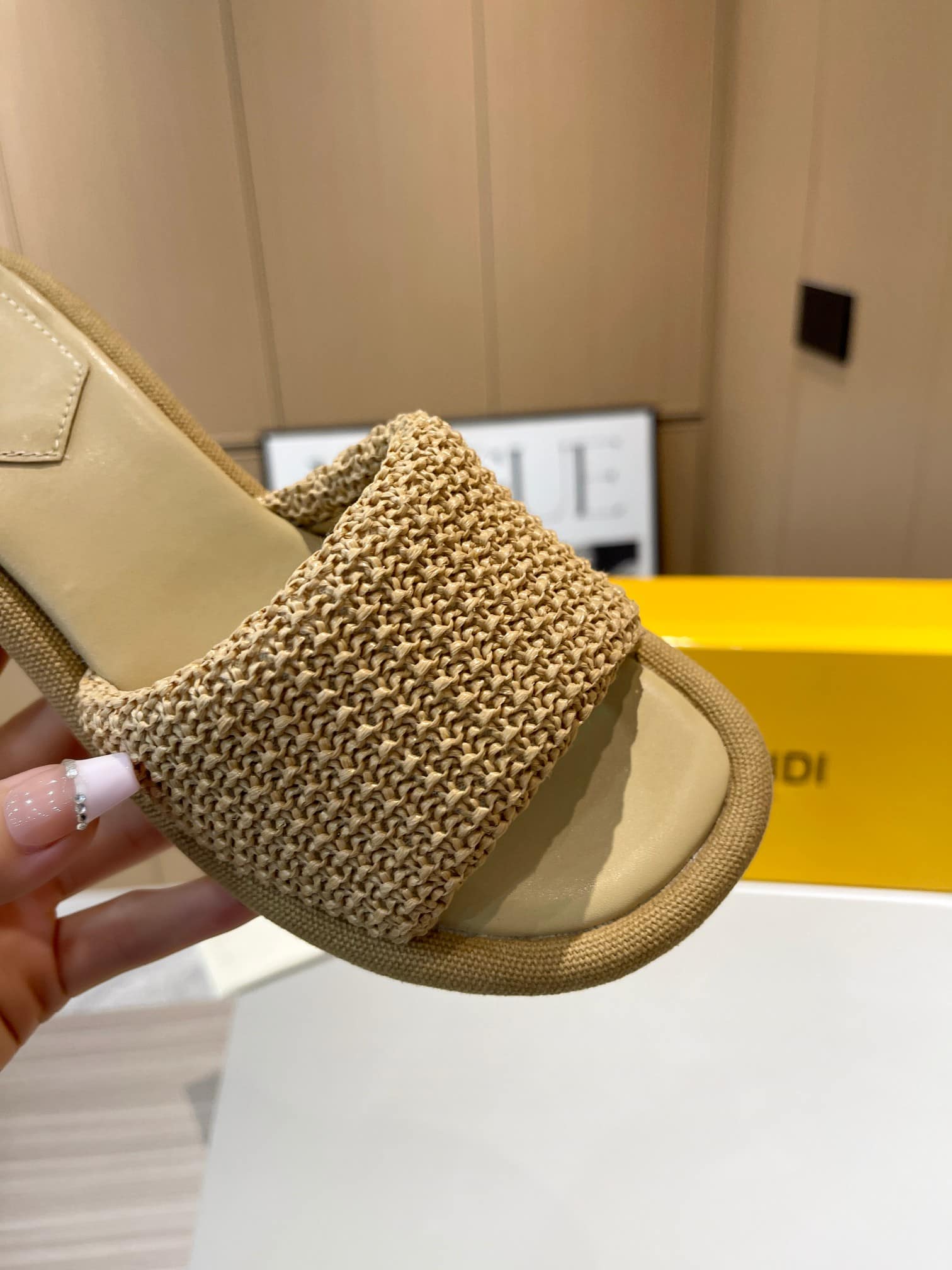 - Cutout details the gleaming block heel of this summery slide sandal crafted of raffia and creamy lambskin leather.