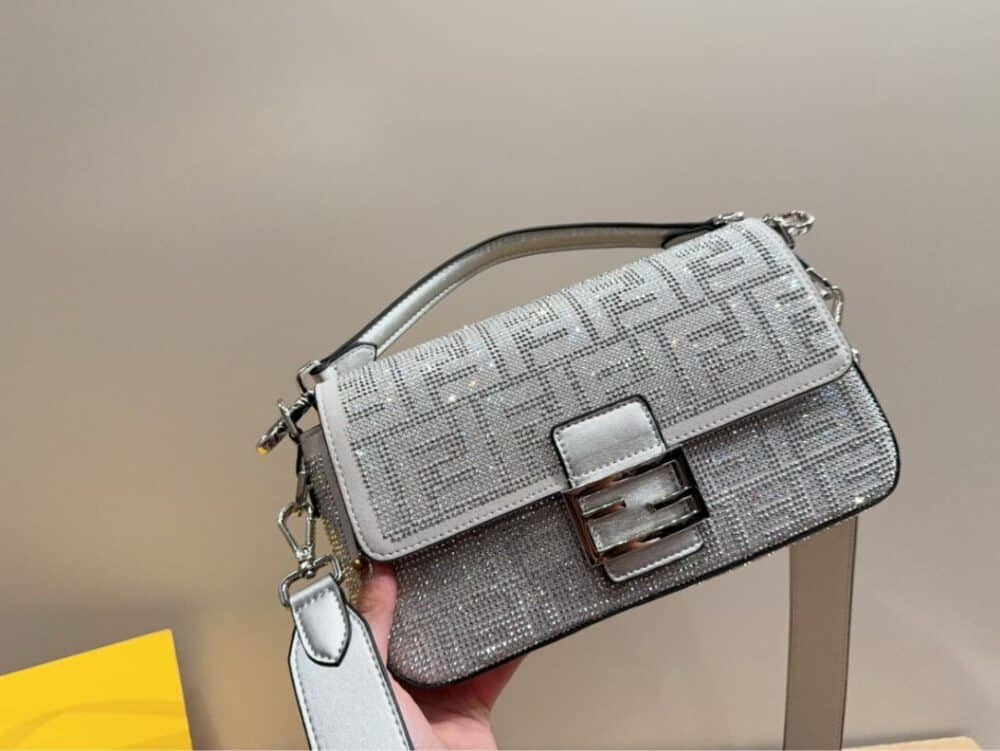 - Decorated with an FF clasp.
