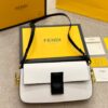 - It is made of soft white nappa leather and embellished with two metal FF buckles