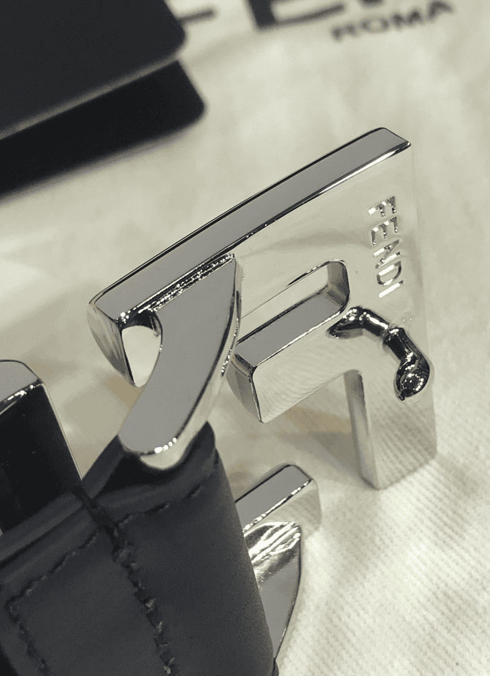 FENDI BLACK LEATHER BELT WITH FF SILVER BUCKLE 40MM