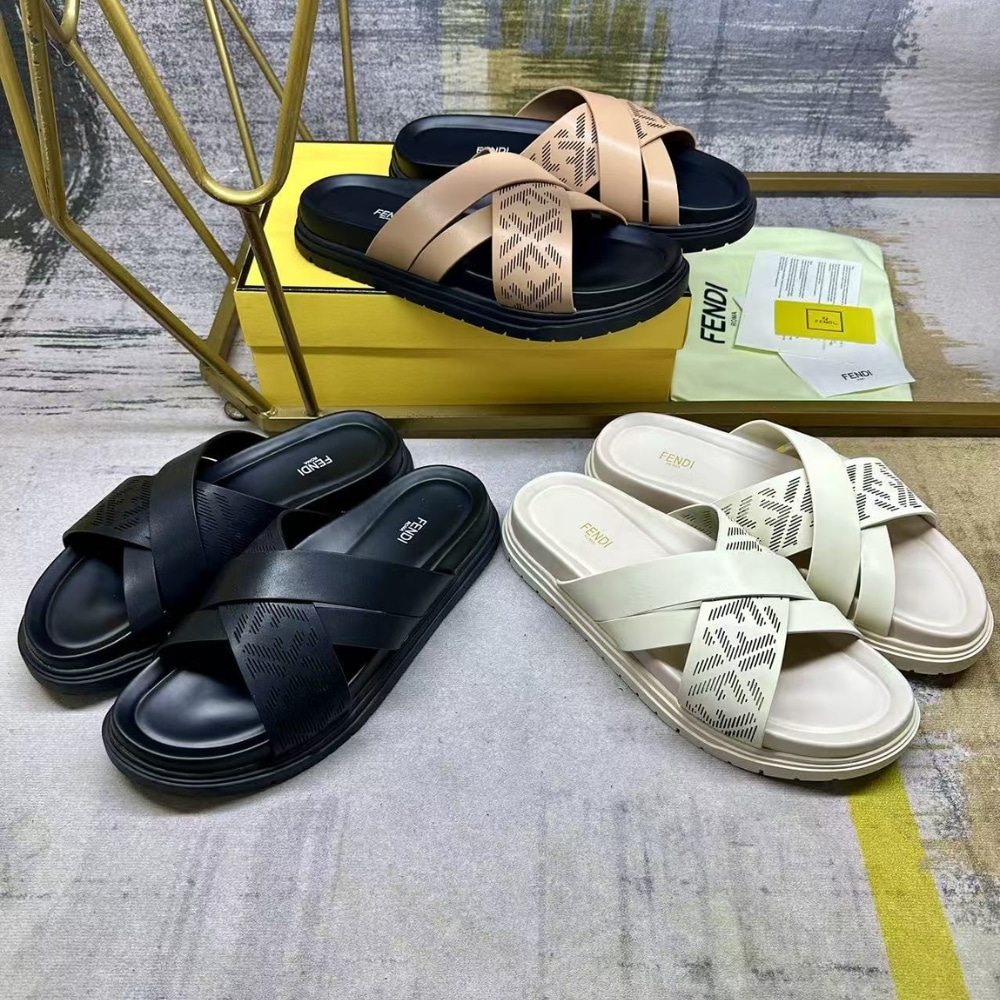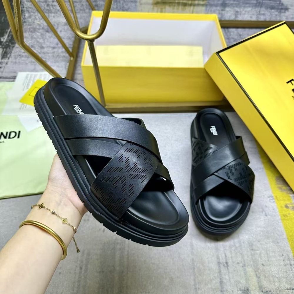 FENDI BLACK LEATHER SLIDES 7X1770ARIDF0ABB