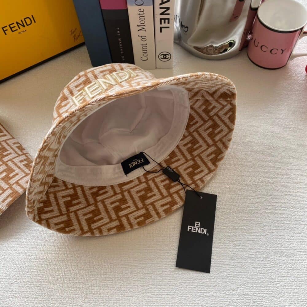 FENDI FABRIC FF MOTIF BUCKET HAT BEIGE