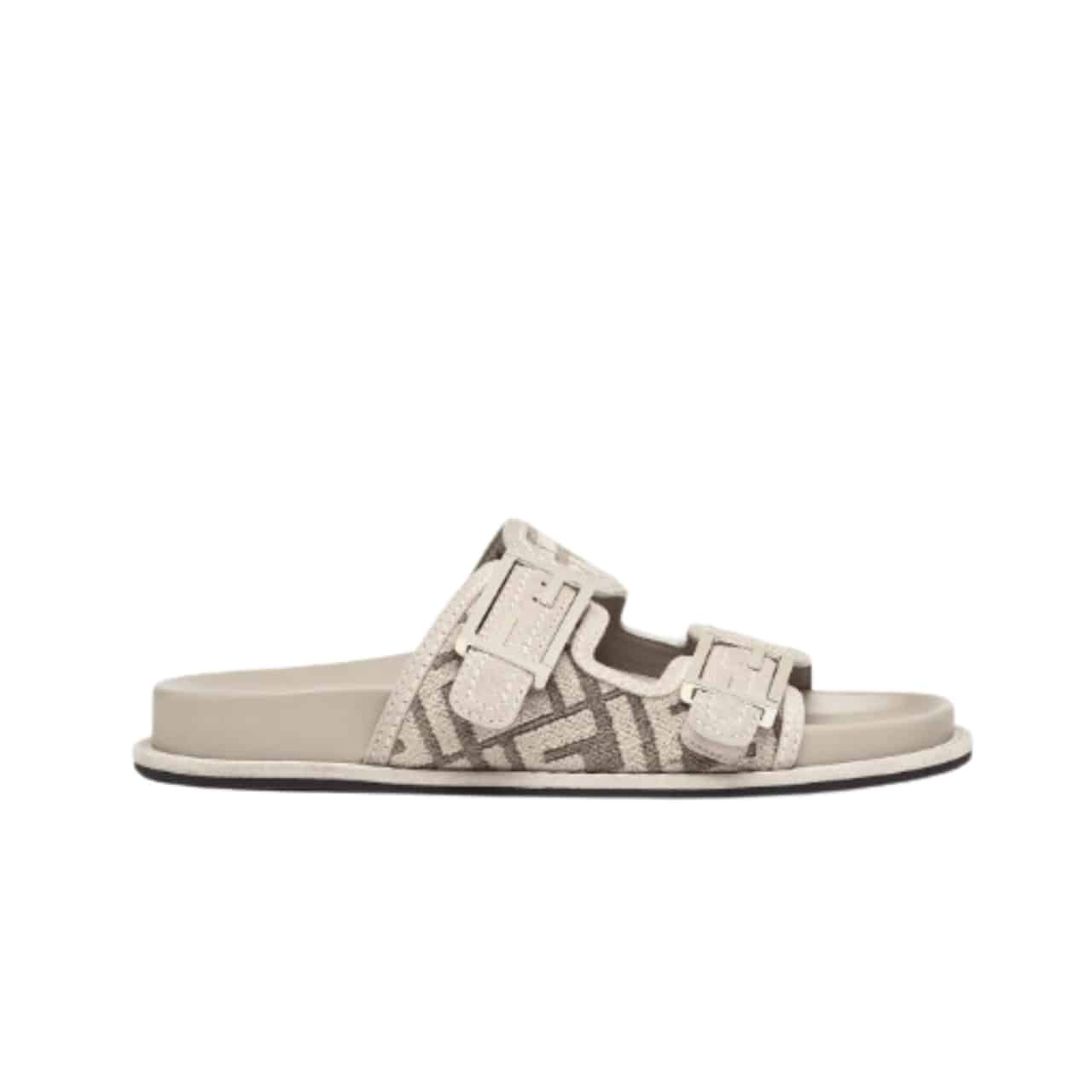 - Made of chenille with dove grey and beige jacquard FF motif.