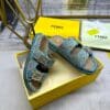 - Double-band flat slides with FF Baguette decorative buckles.