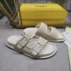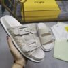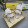 - Double-strap flat slide with decorative FF Baguette buckle.