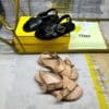 - Triple-band flat cross-over slides with FF Baguette decorative buckles.