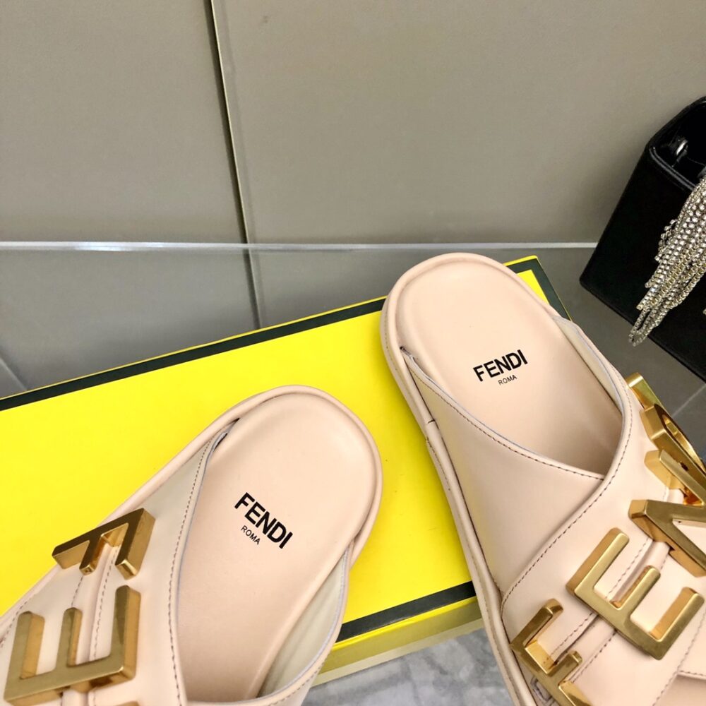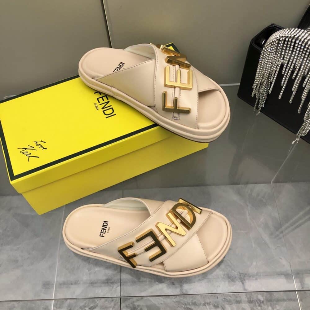 FENDI FENDIGRAPHY LEATHER SLIDES LIGHT PINK