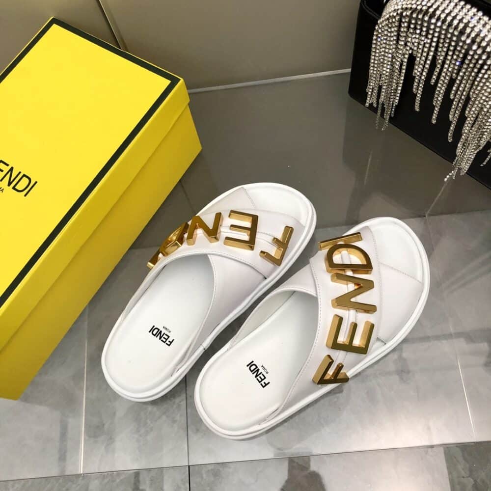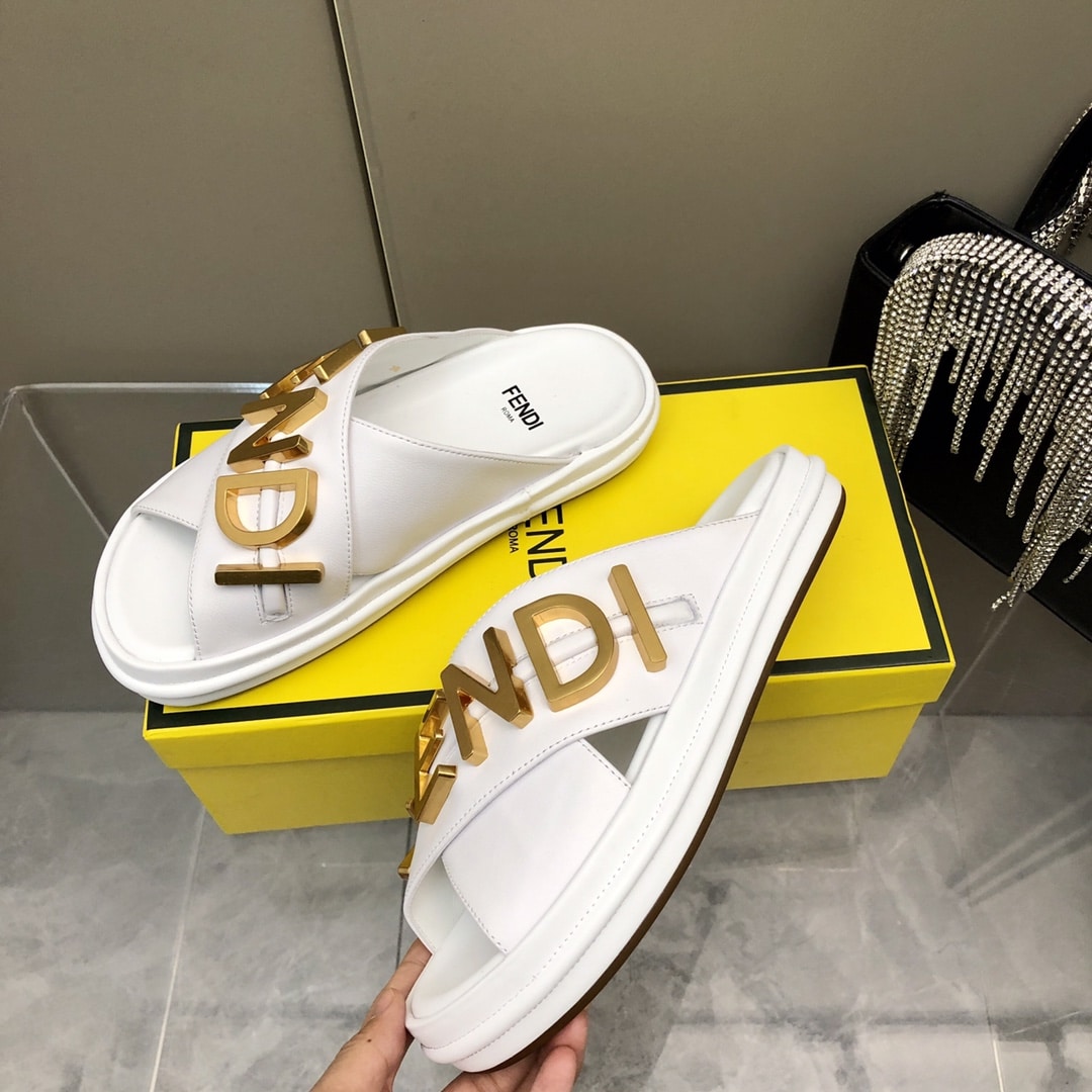 FENDI FENDIGRAPHY LEATHER SLIDES WHITE