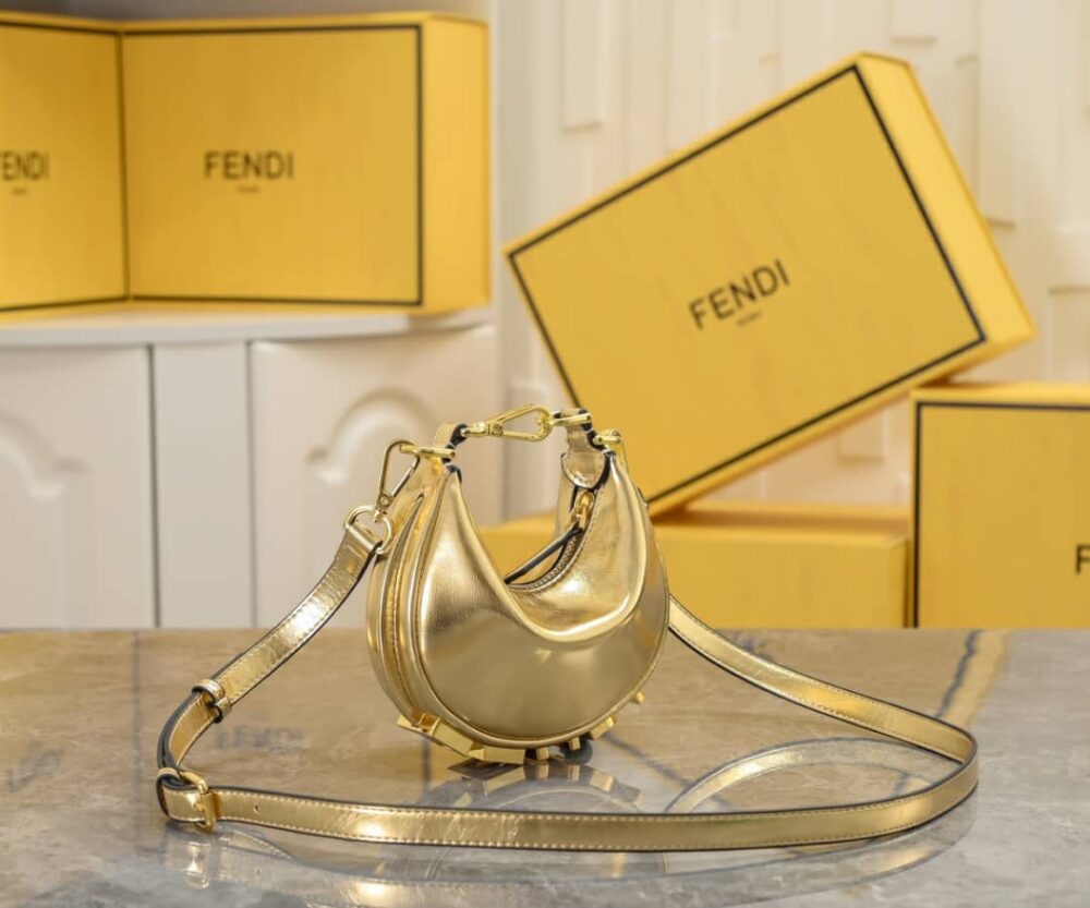 Fendi //Fendigraphy Nano Mini // Leather Mini Bag //Metallic Gold// 16cm
