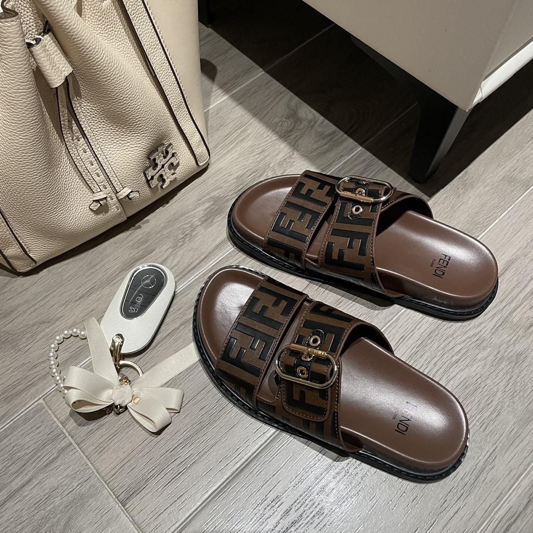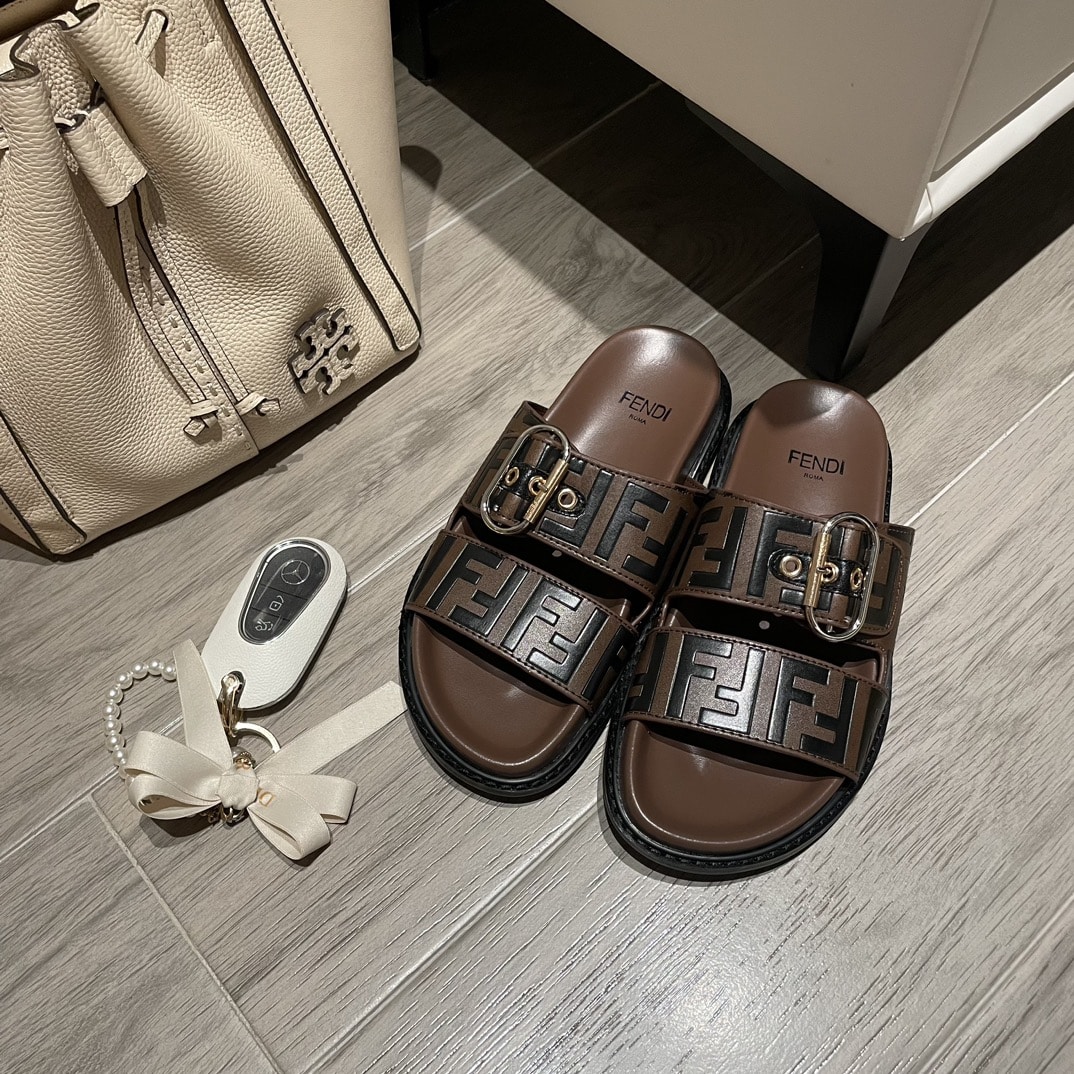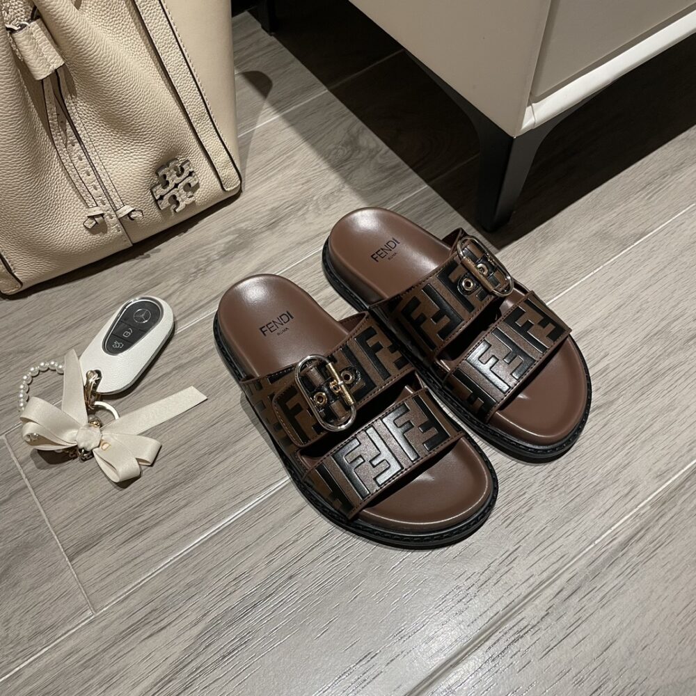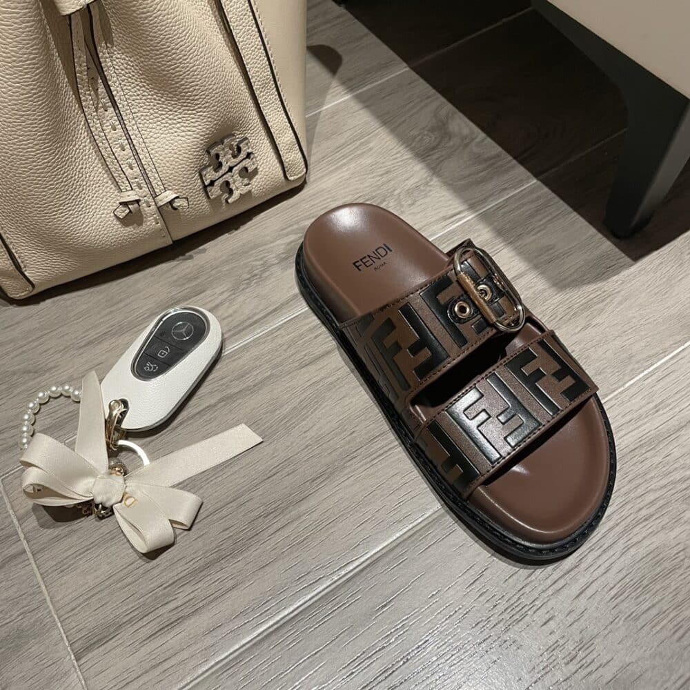 FENDI FF DOUBLE BAND SLIDE BROWN