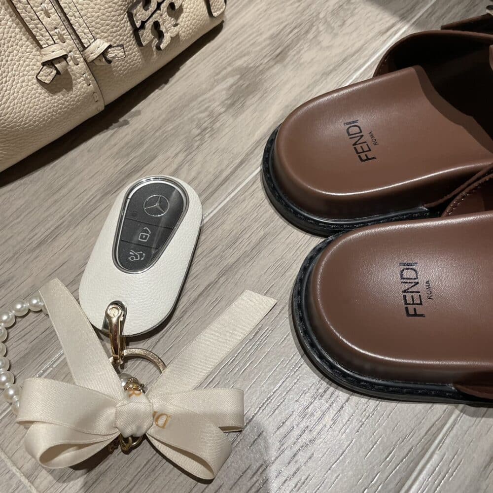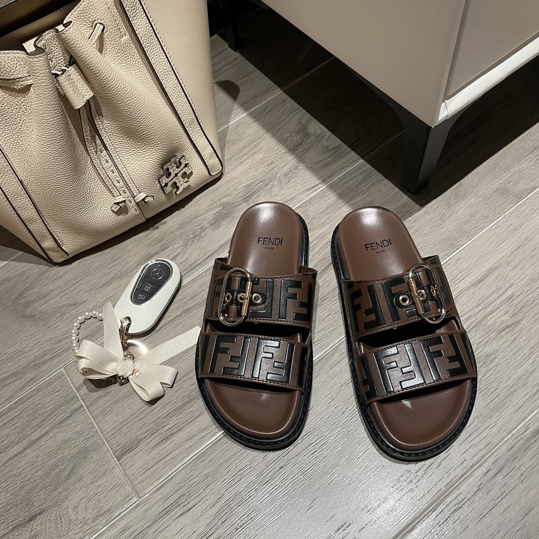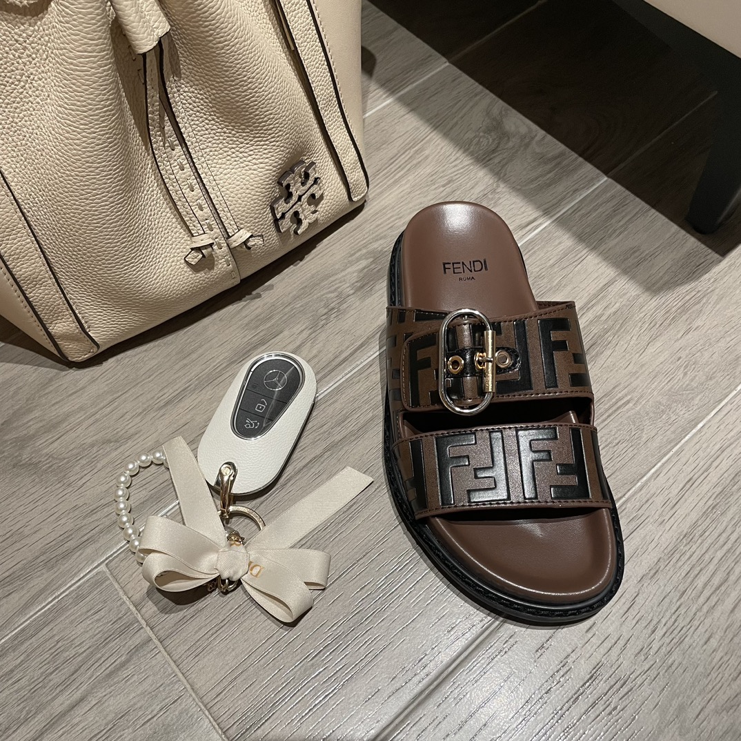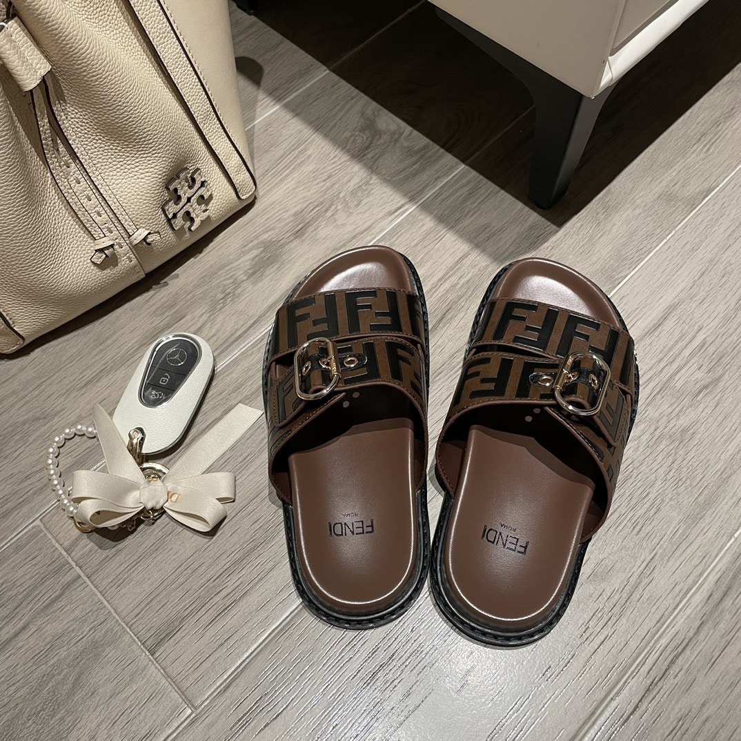 FENDI FF DOUBLE BAND SLIDE BROWN