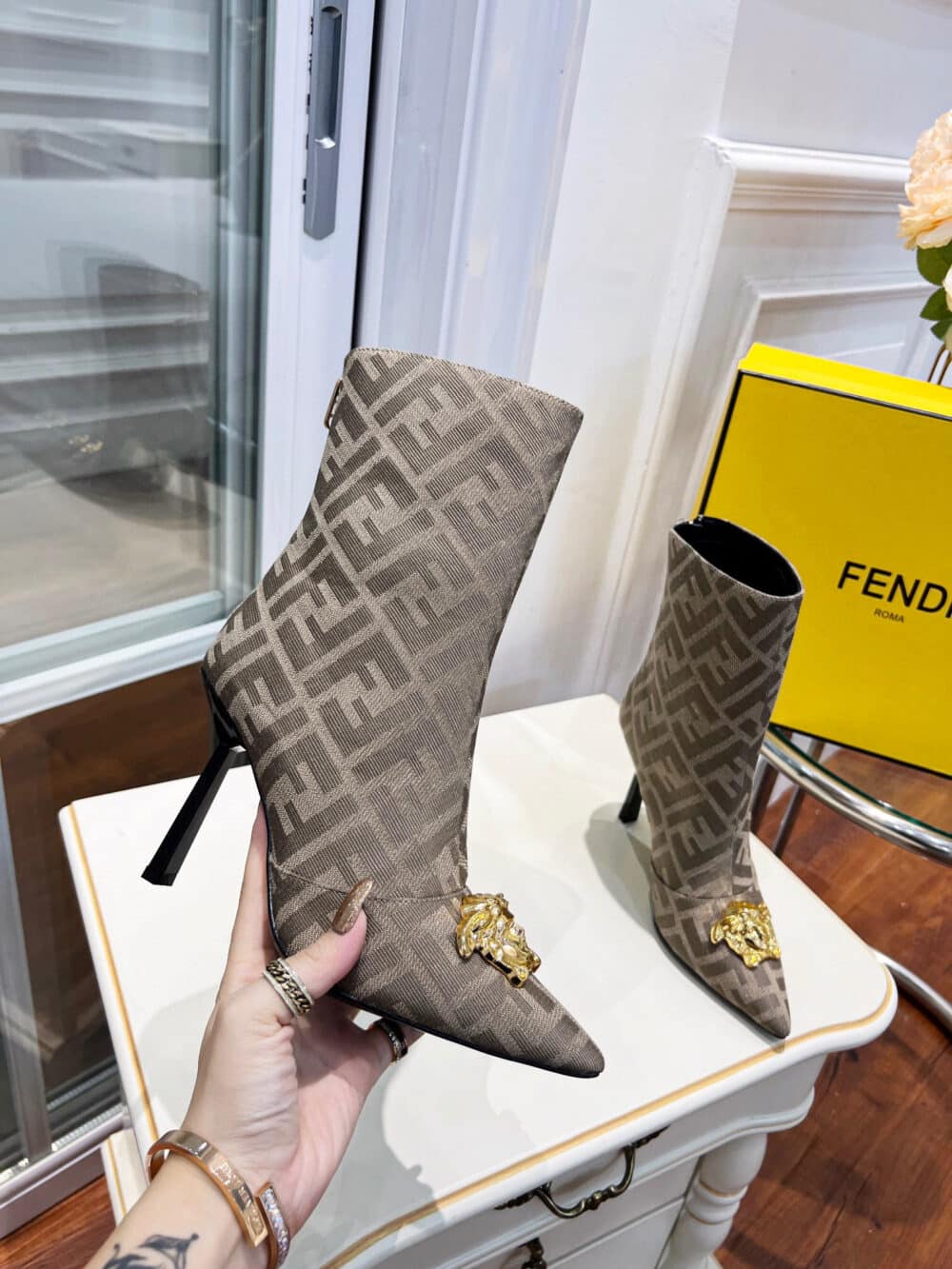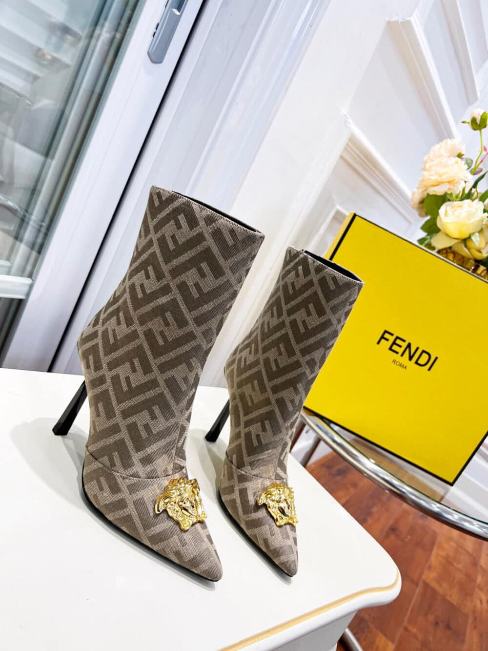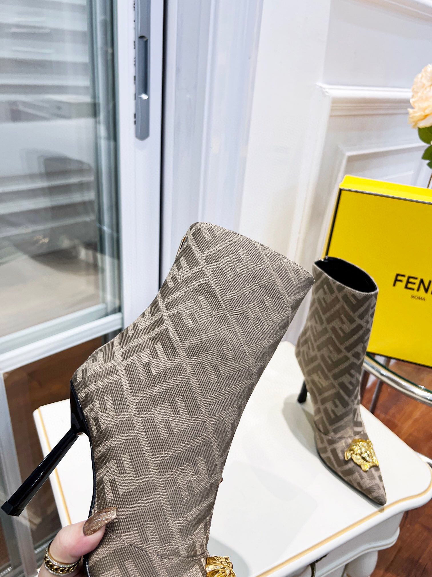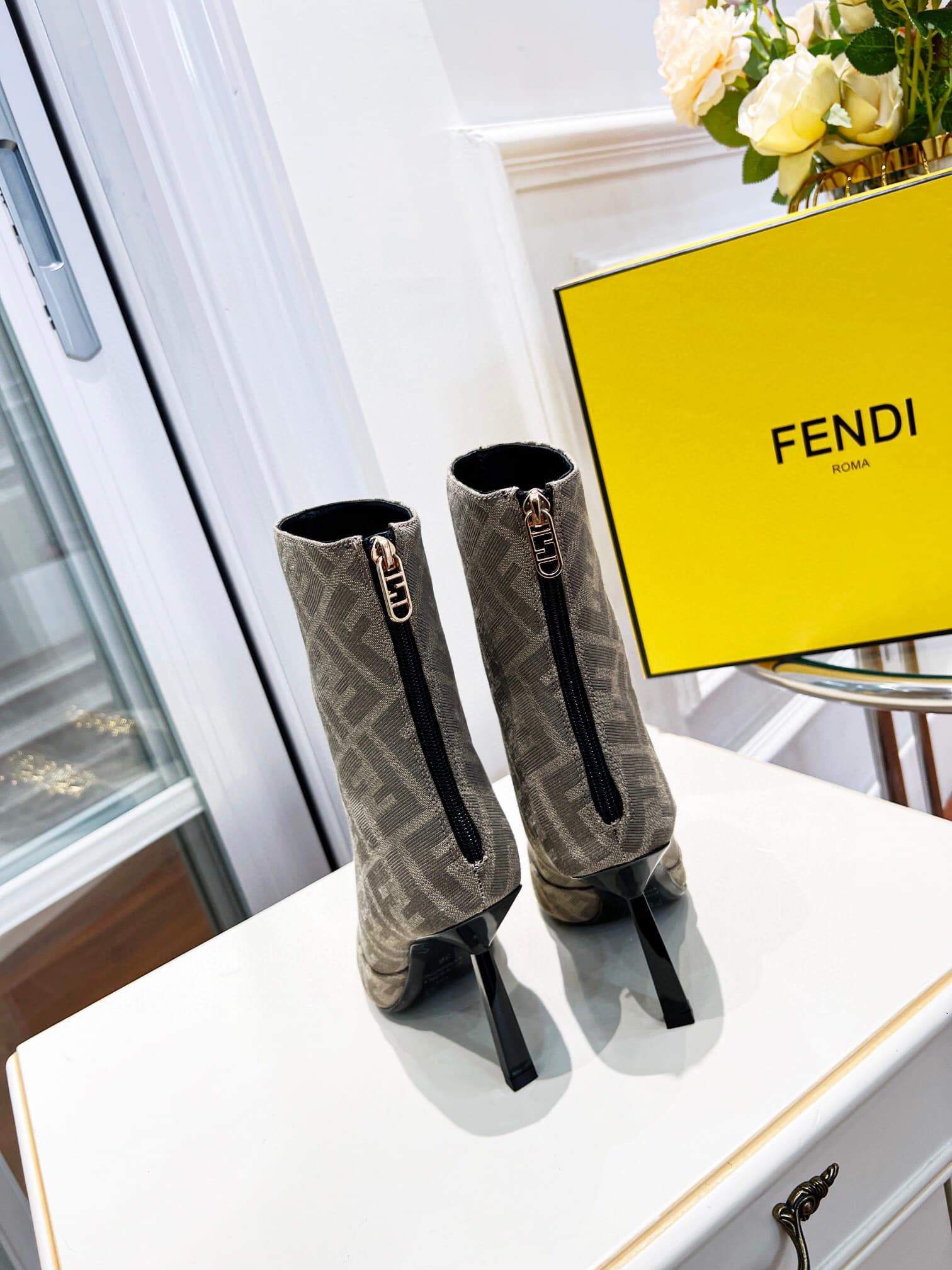 FENDI FF JACQUARD HIGH HEEL BOOTS GREY 10.5CM