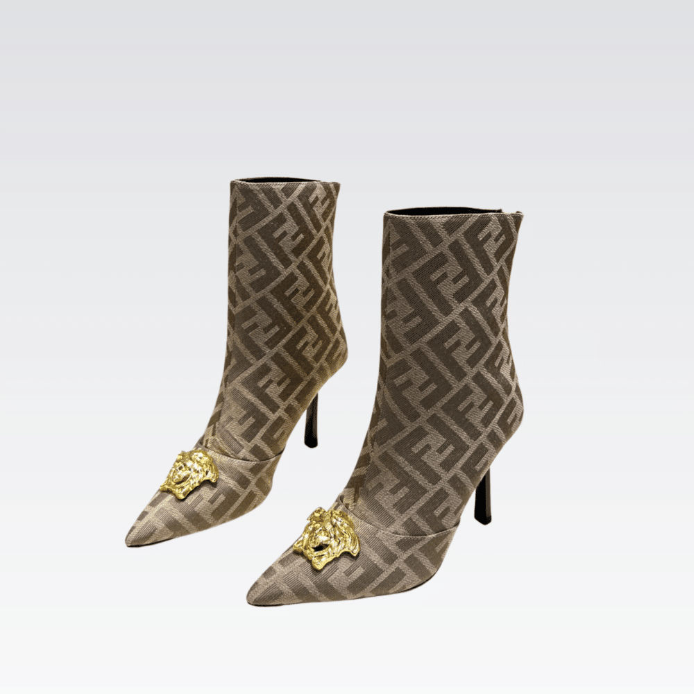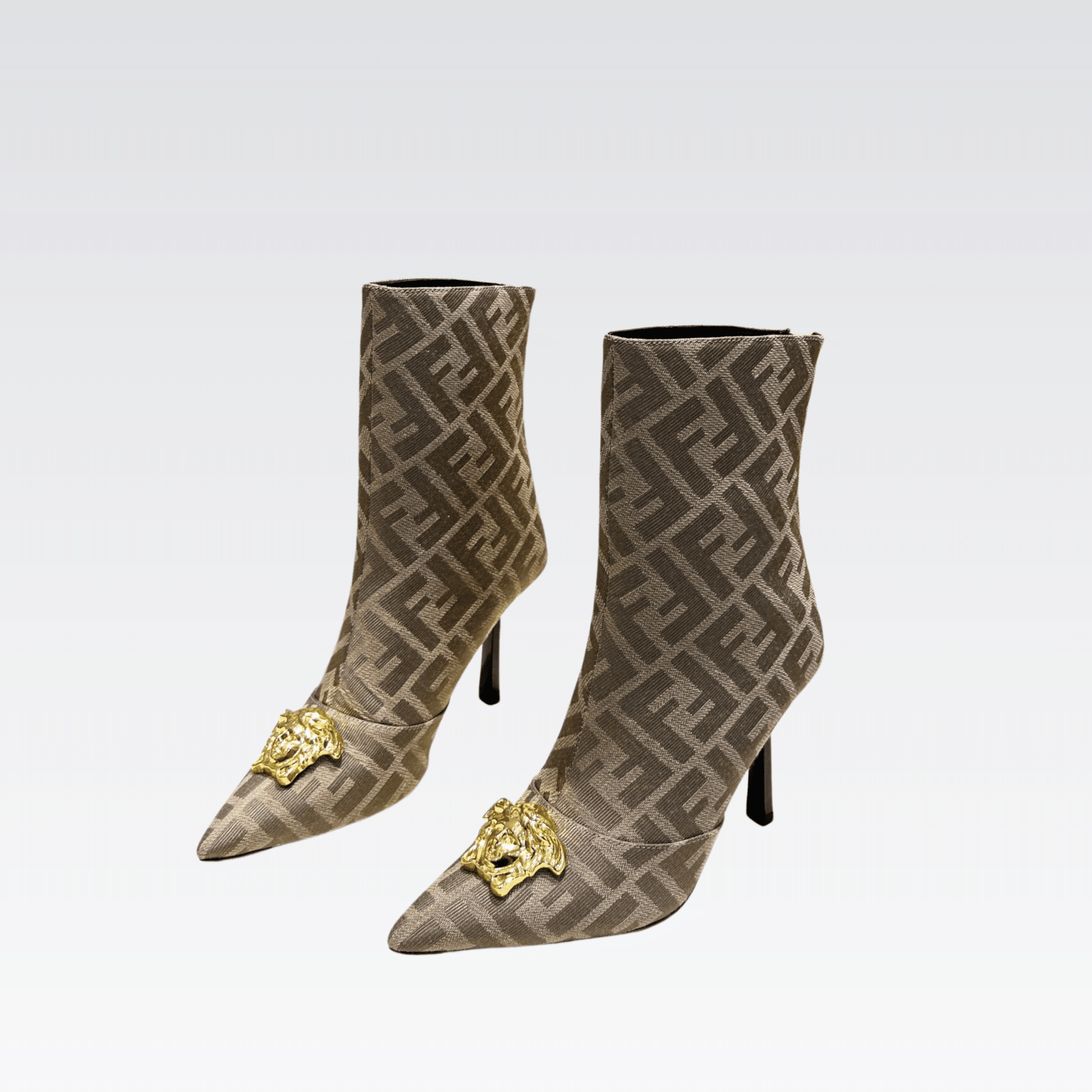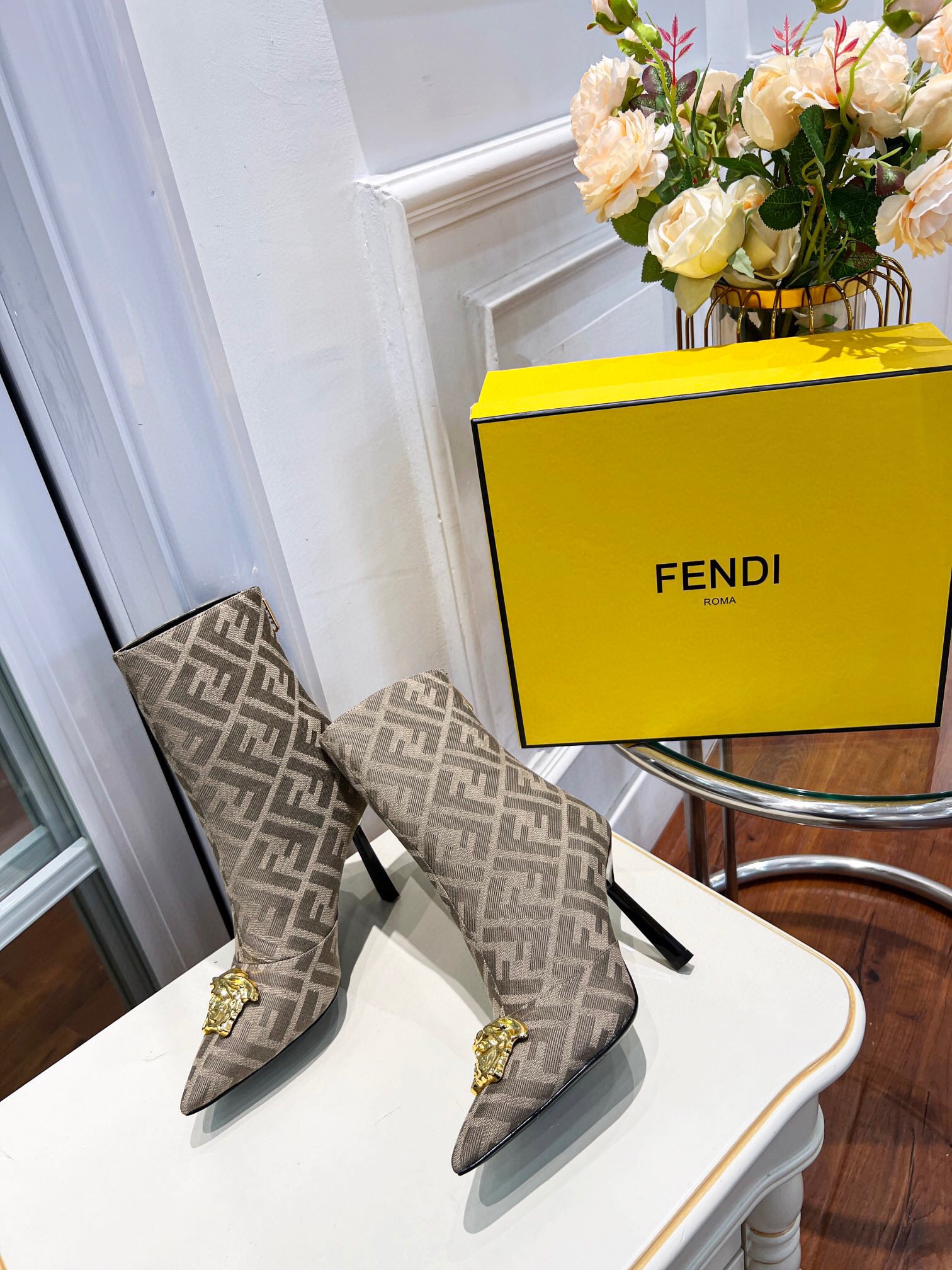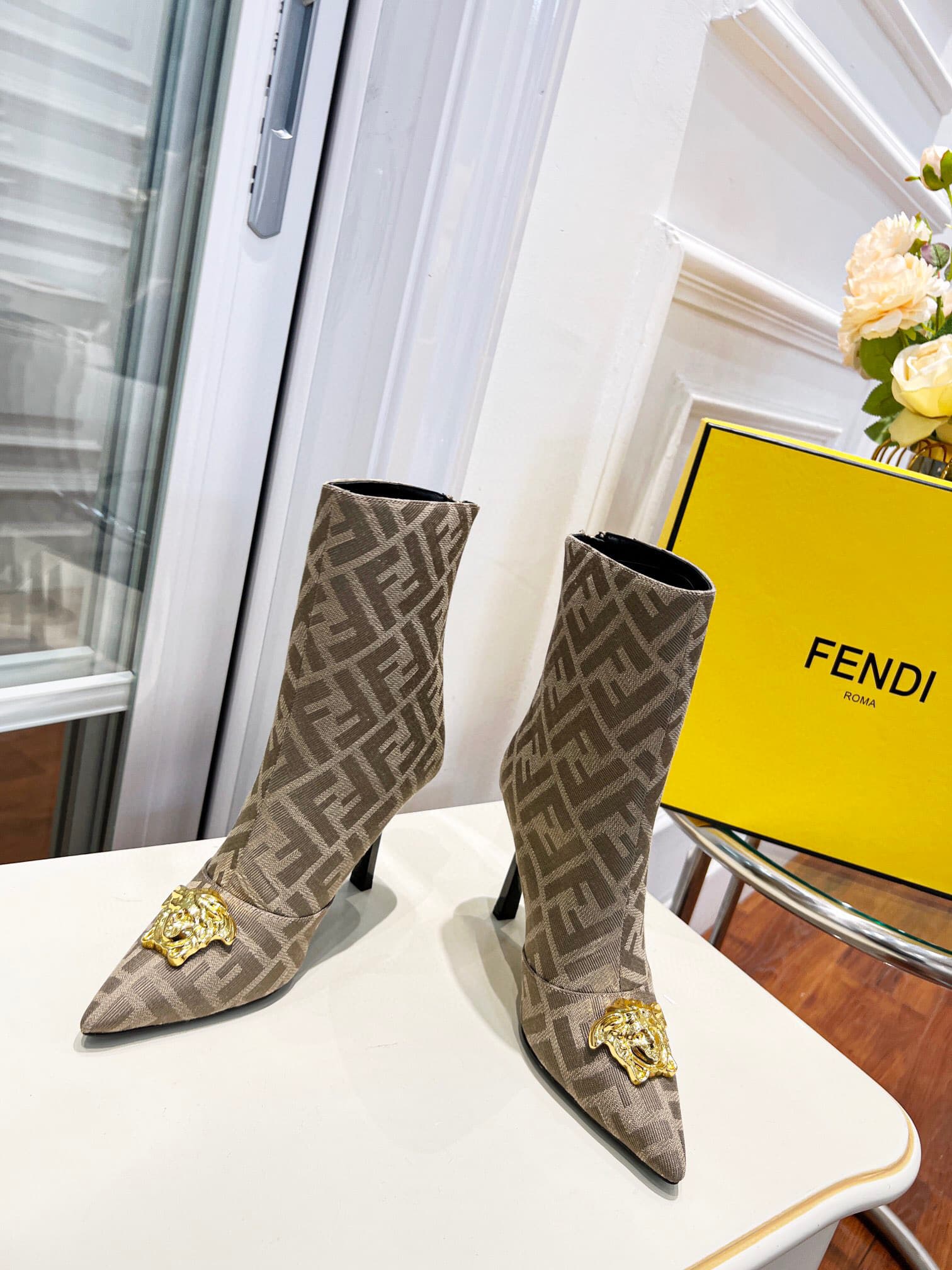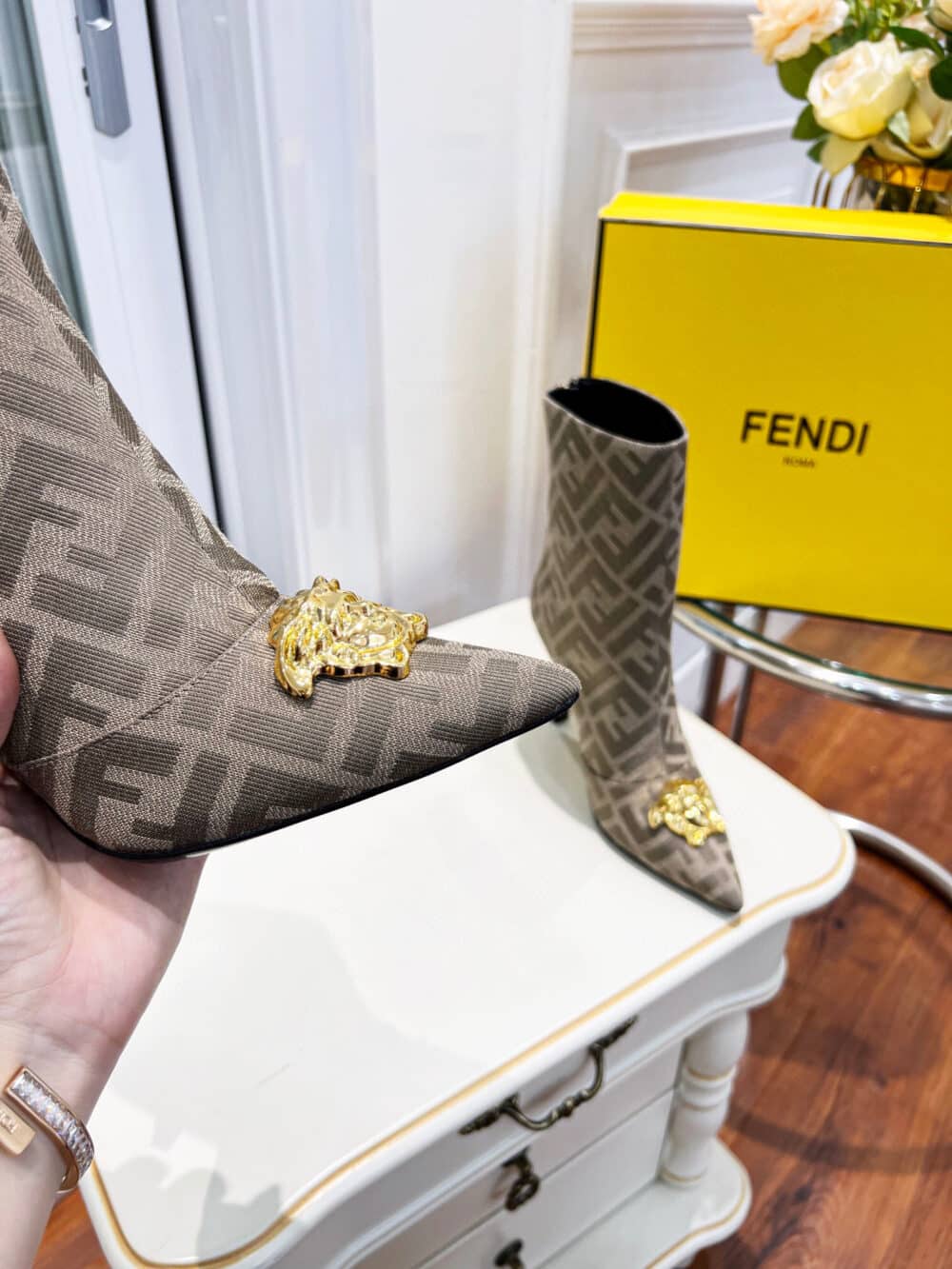 FENDI FF JACQUARD HIGH HEEL BOOTS GREY 10.5CM