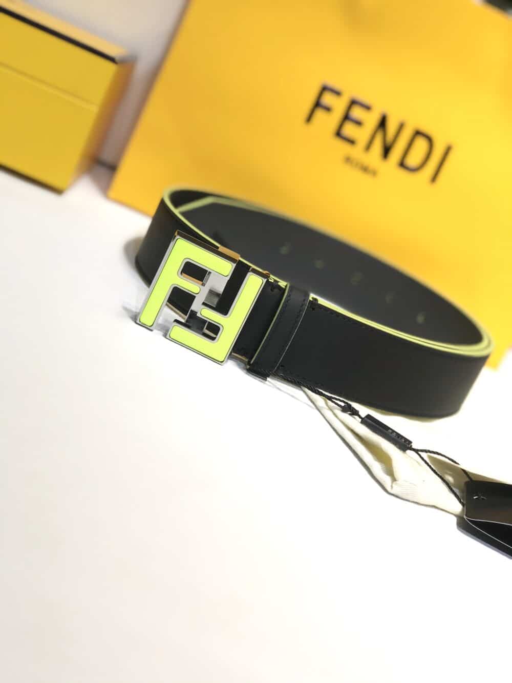 FENDI FF LEATHER BETL NEON GREEN 40MM