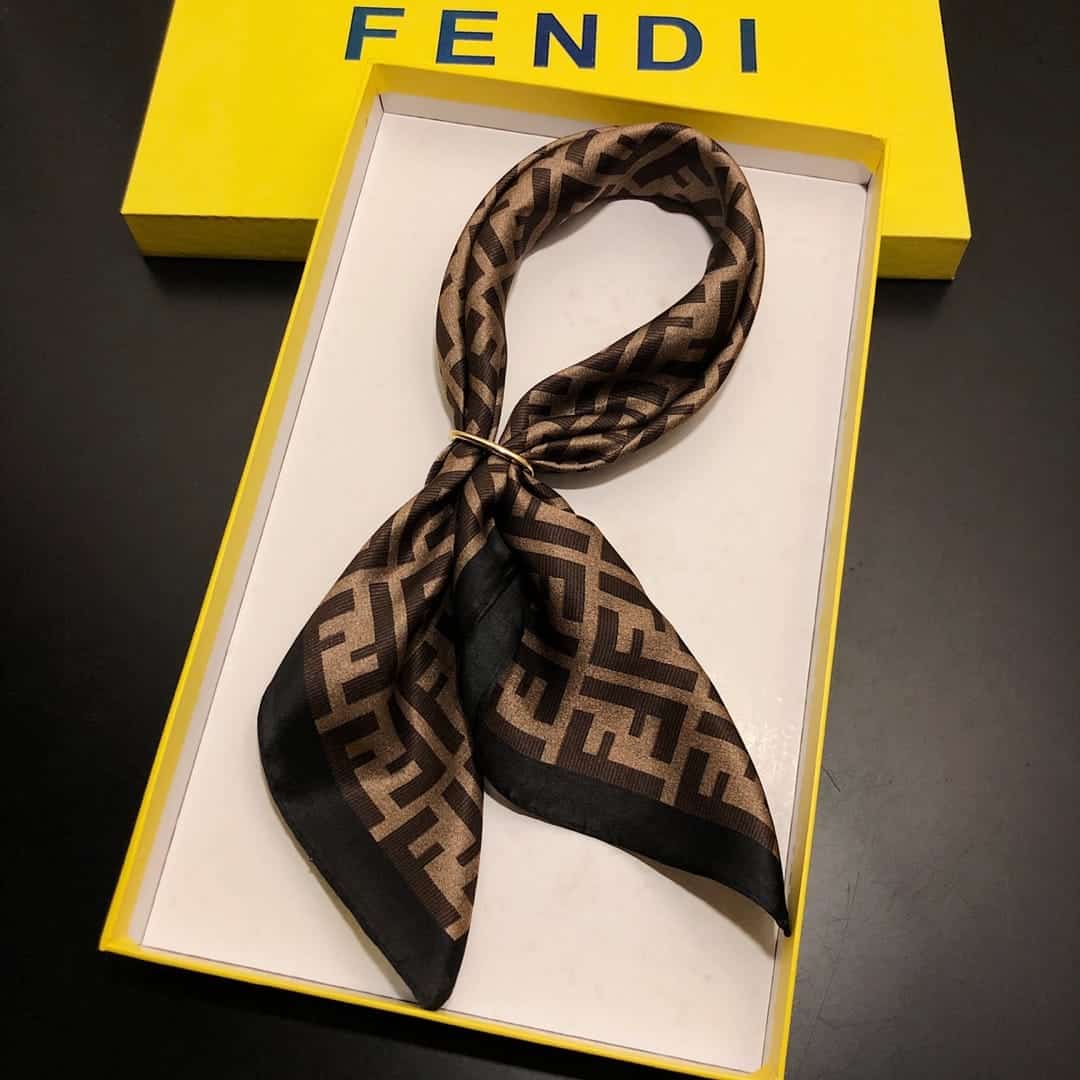 FENDI FF MOTIF SILK SQUARE SCARF BROWN BLACK