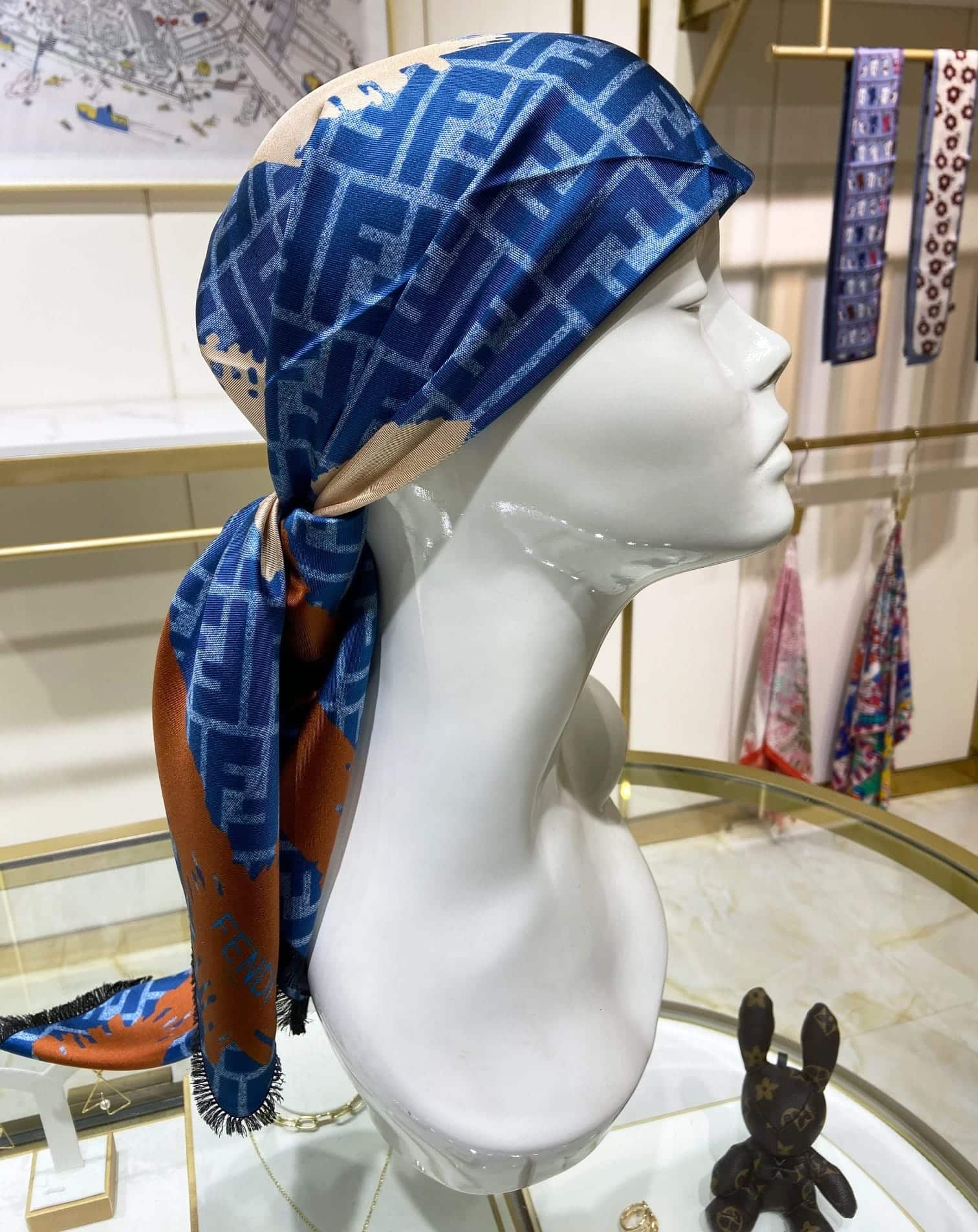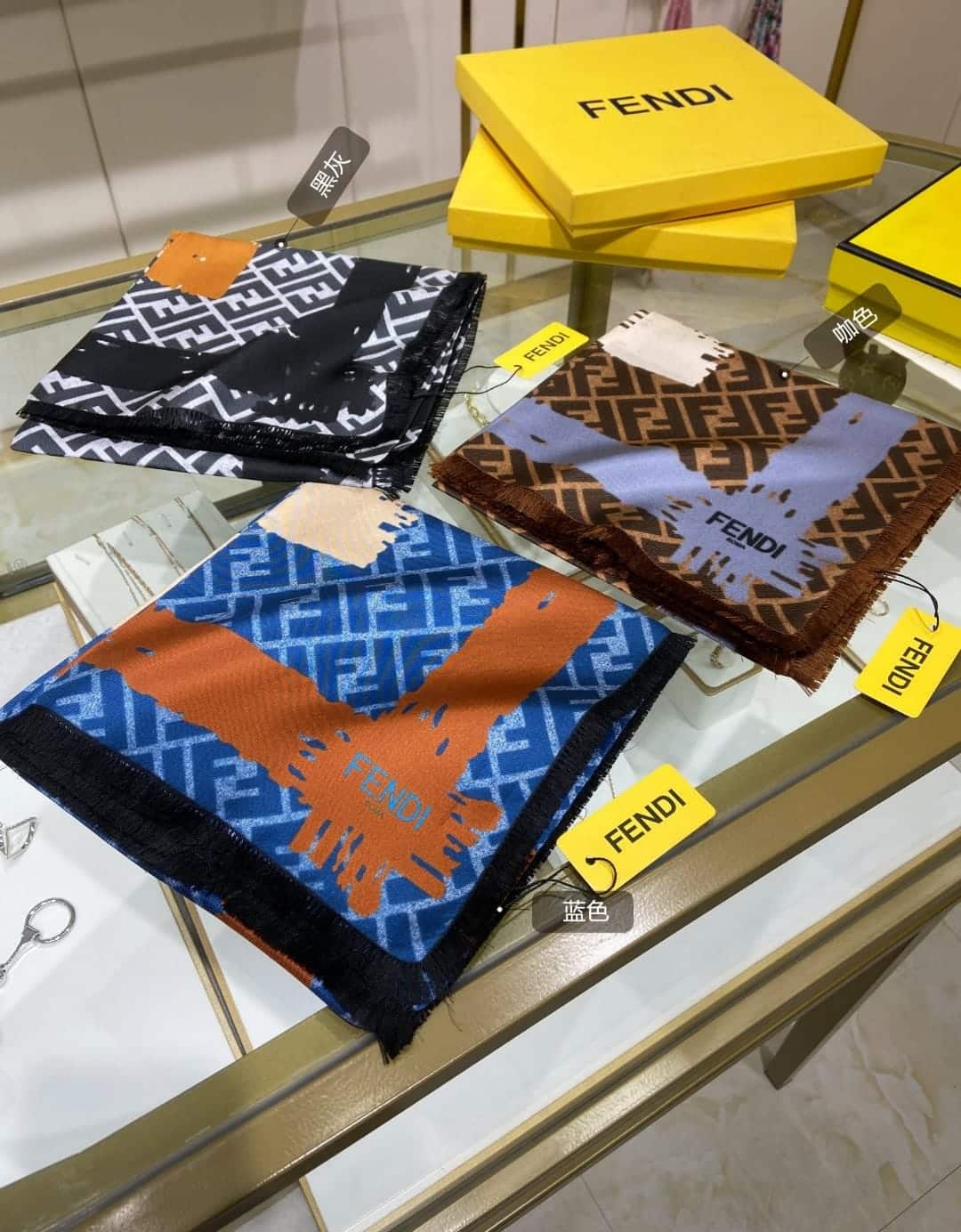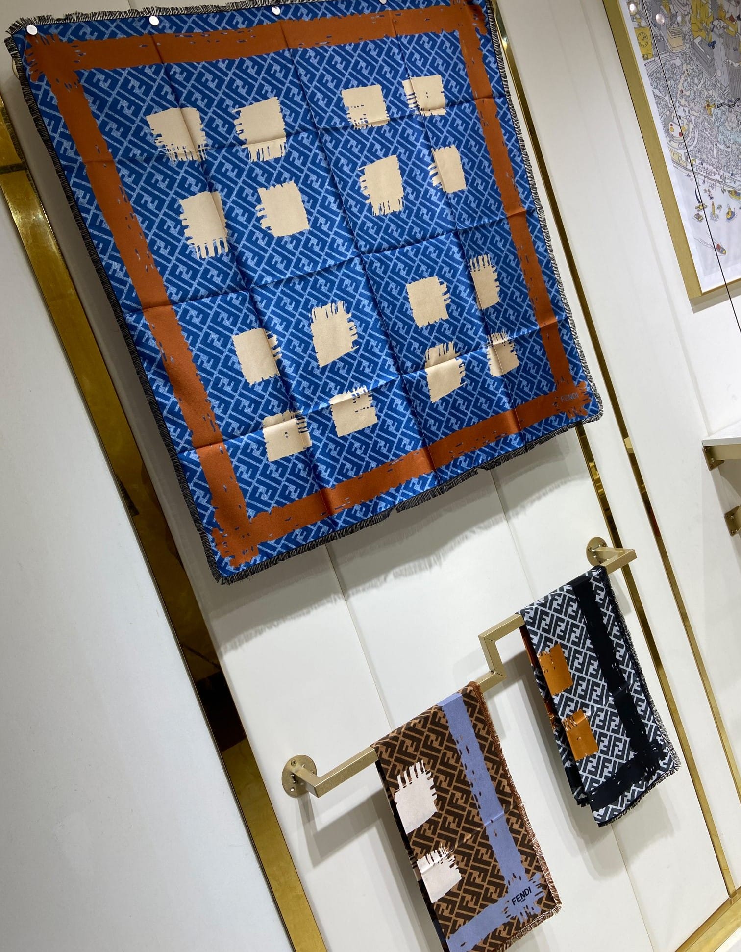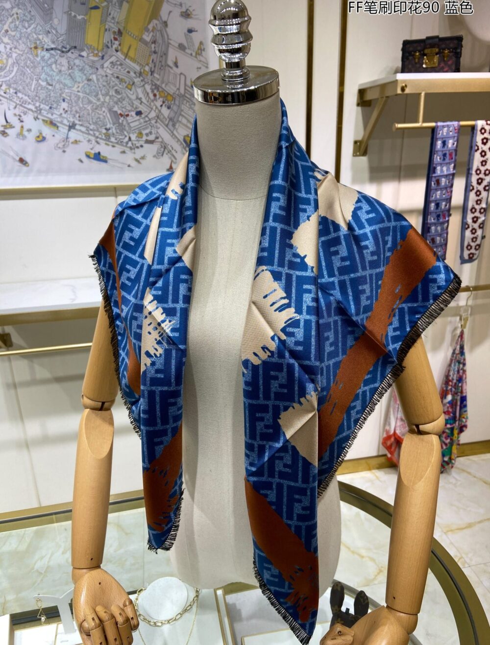 FENDI FF PRINTED BRUSH SCARF BLUE