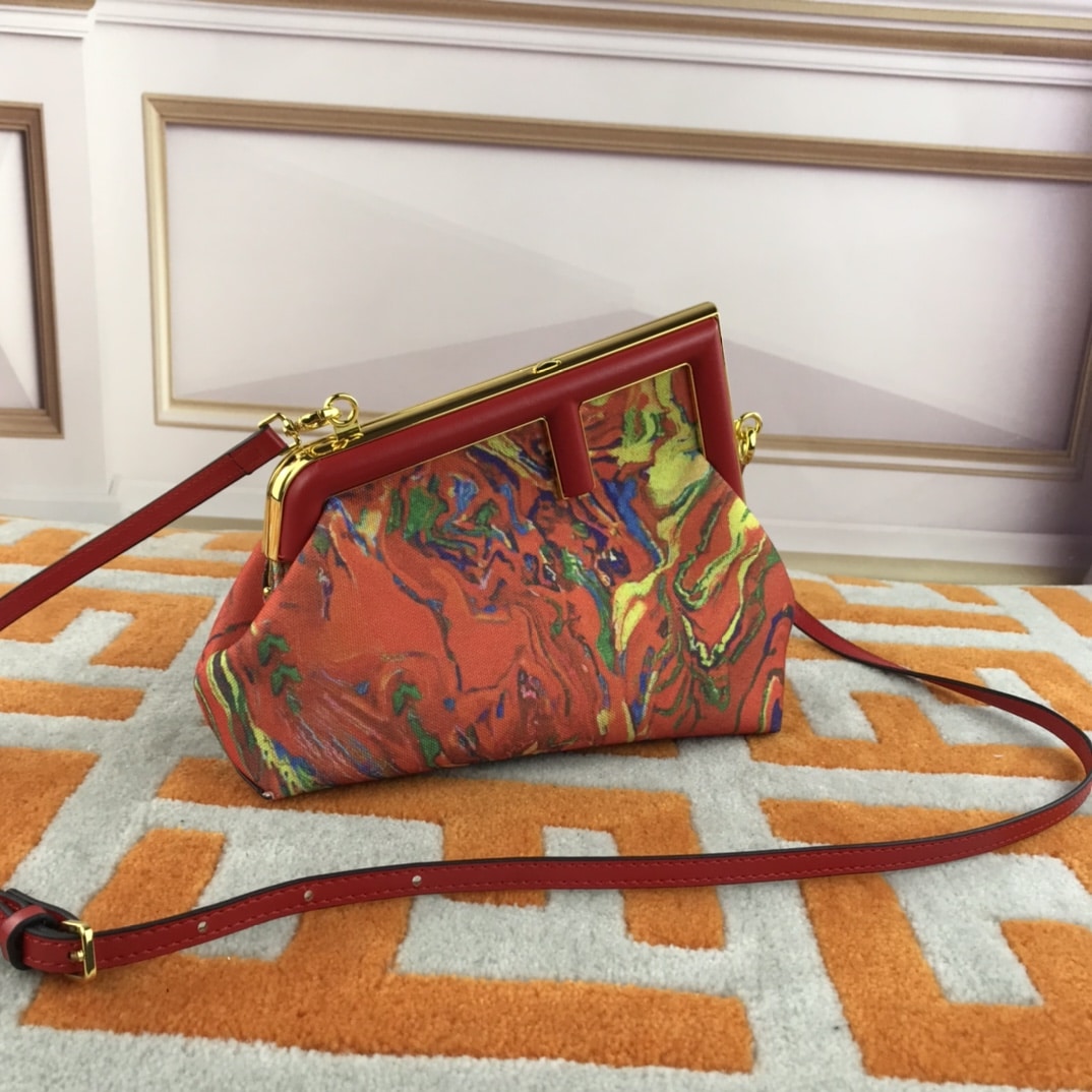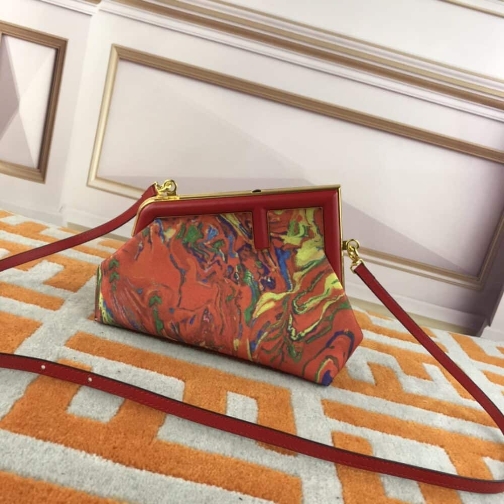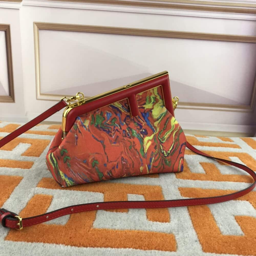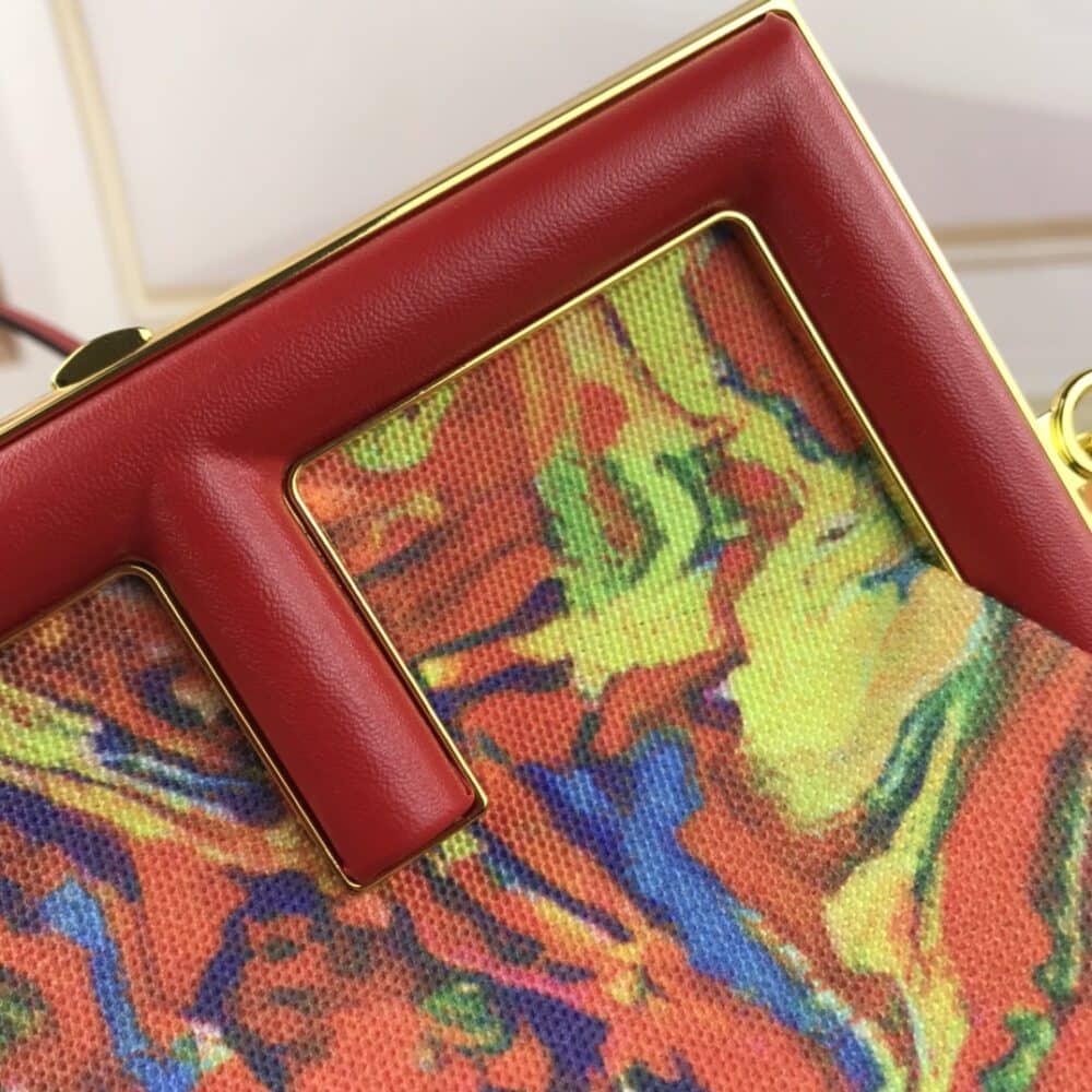 Fendi First Medium Red marble fabric bag 26cm 8BP127AGXLF0YTA