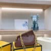 Fendi First With Chain Leather Bag Dark Brown 24cm