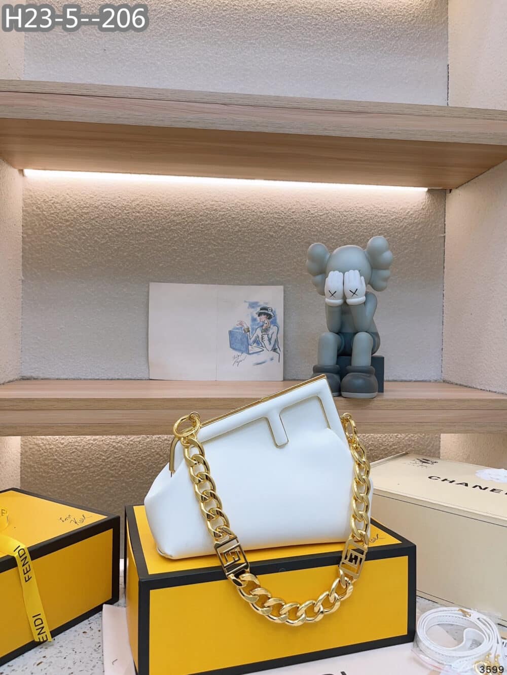Fendi First With Chain Leather Bag White 24cm