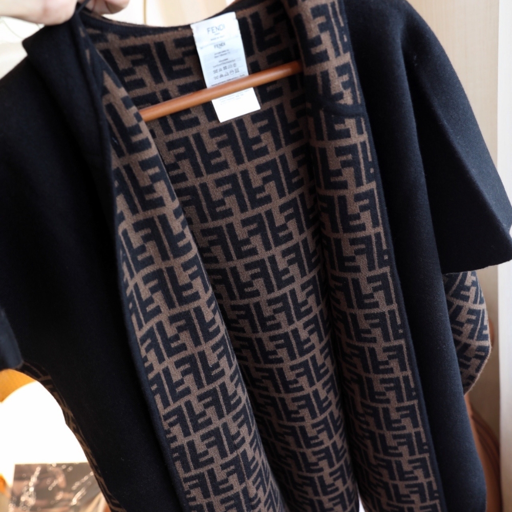 Fendi Junior Cape Black And Logo Reversible Cape JFQ056AKLSF1M0T