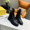 Fendi Leather Biker Boots With Beige Ff Cuff Black