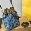 - Made of denim-effect, light blue fabric, with an FF motif.