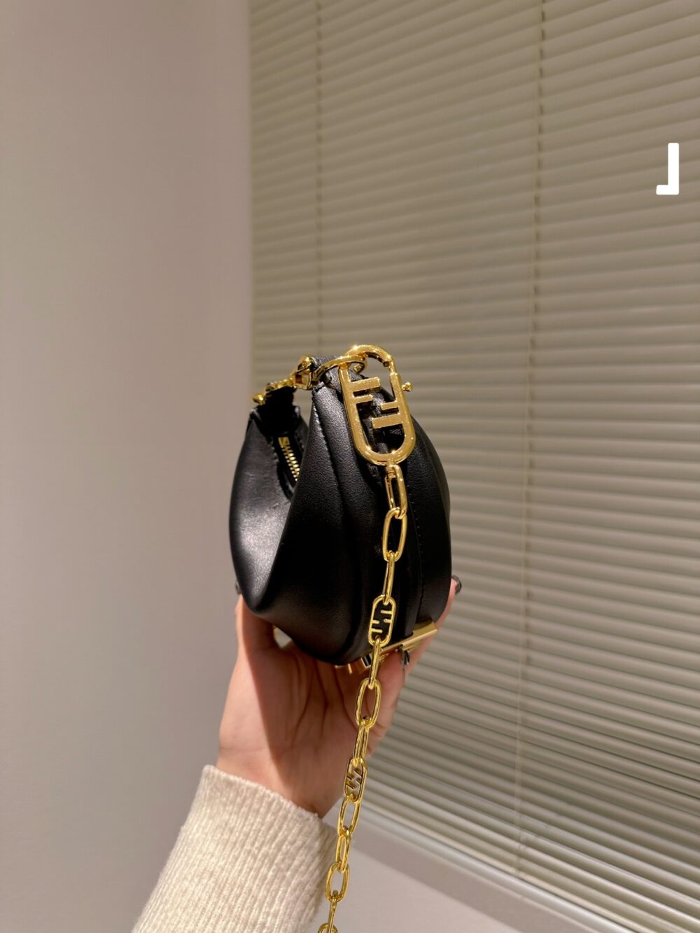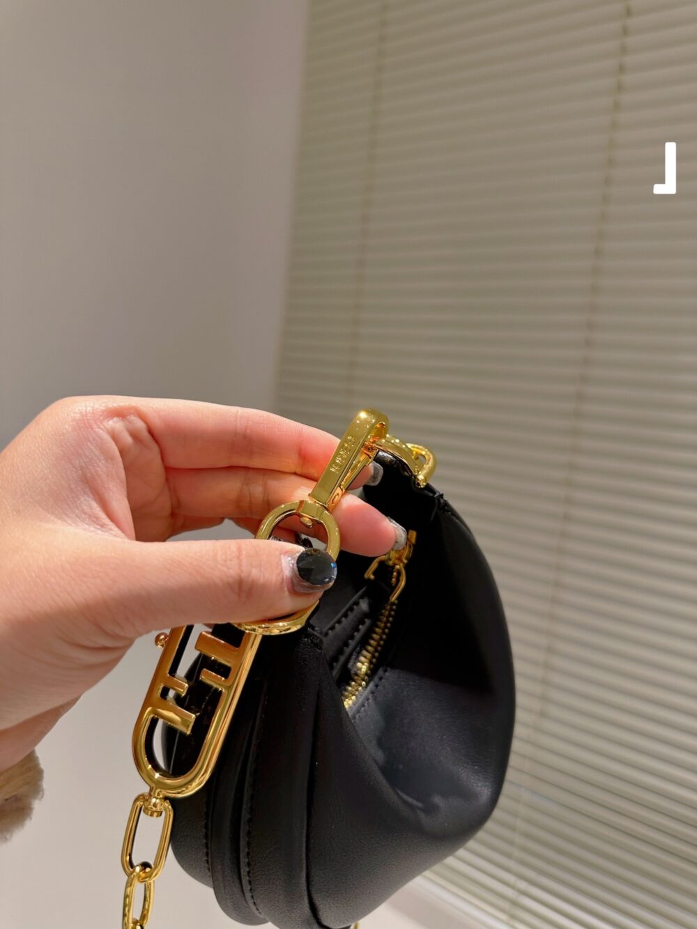 - Nano Fendigraphy Hobo bag with zip fastening, embellished with vintage gold metal FENDI lettering.
