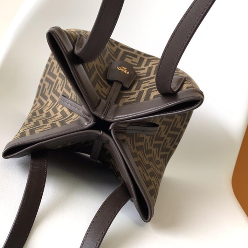 - It comes with a key case charm with the lettering “Fendi Roma” in metal and dark brown leather details.