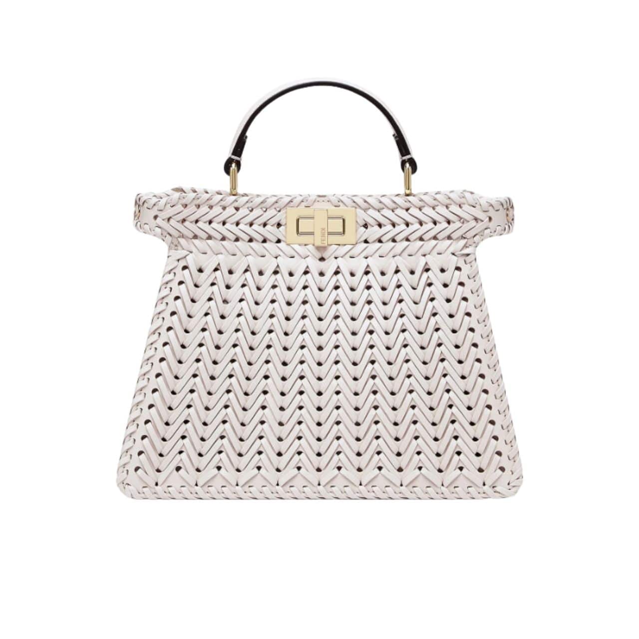 Fendi Peekaboo Iseeu Camellia Interlace Leather Bag White 28 cm / 11 inches