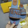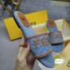 - Made of light blue denim with brown leather profile and Fendi Roma lettering.