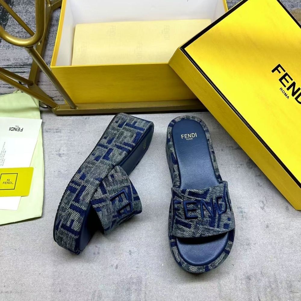 - Made of gray denim with the iconic FF jacquard motif in blue chenille.