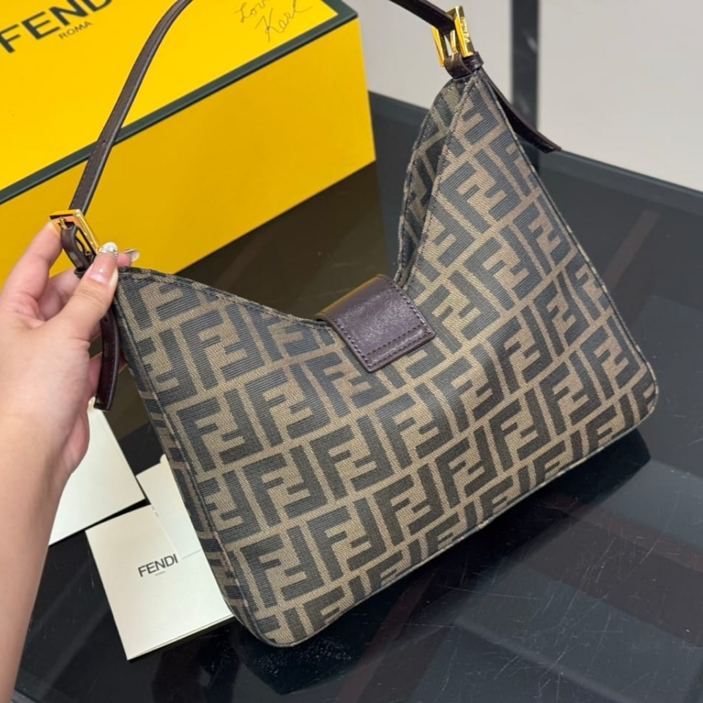 1:1 Replica Bags – Fendi Zucca Baguette Canvas Leather Shoulder Bag Dark Brown 30cm