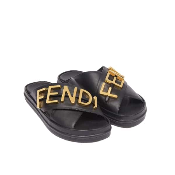 - Mini hobo bag made of soft black leather, embellished with vintage gold metal FENDI lettering.