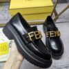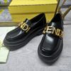 - Robust Fendigraphy loafer featuring Fendi lettering and a rubber lug sole.